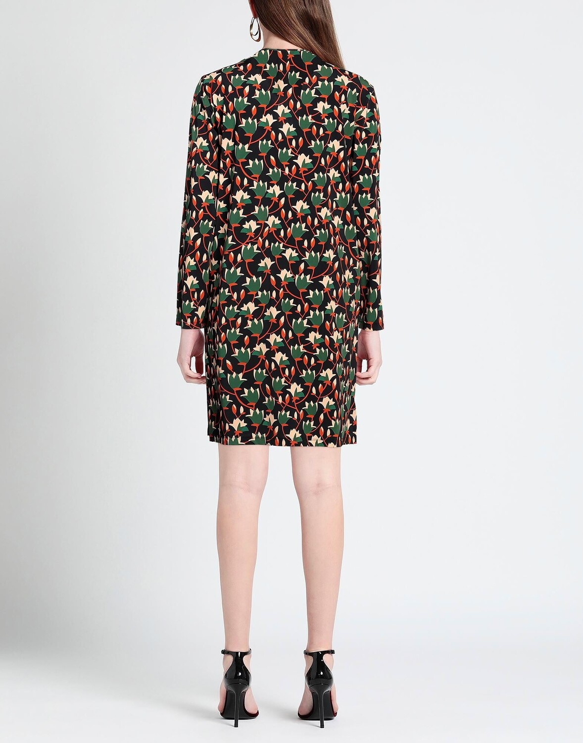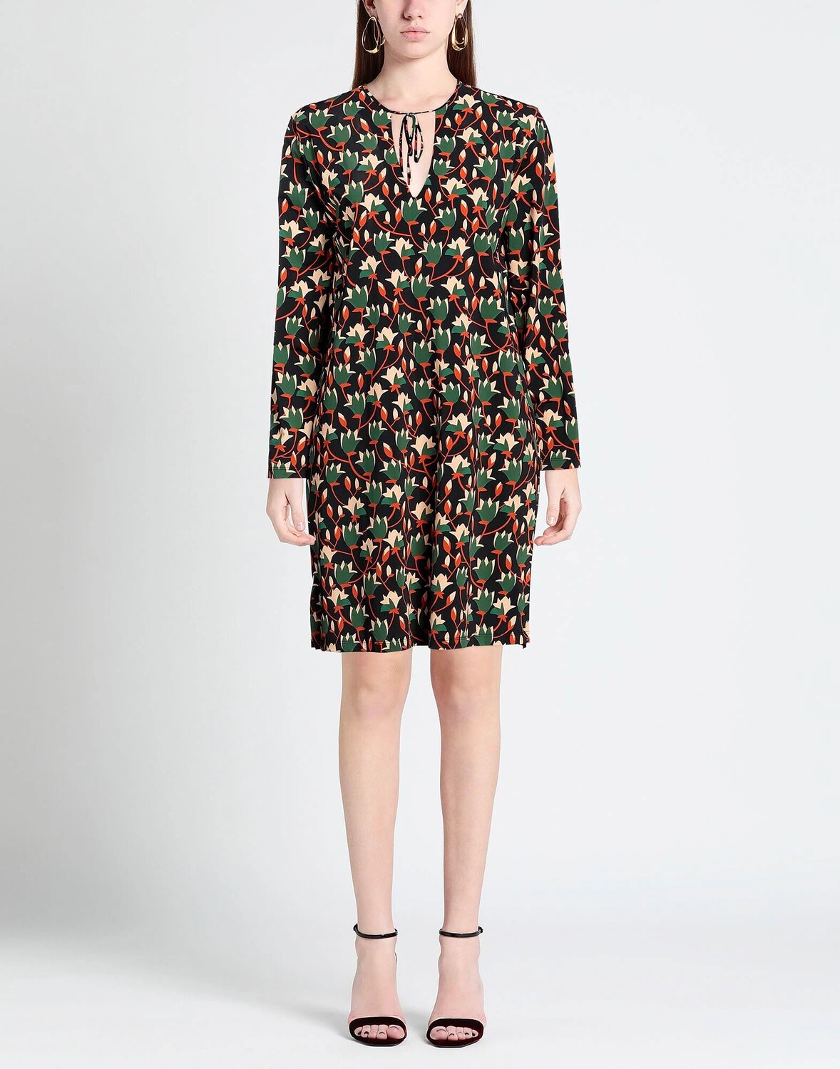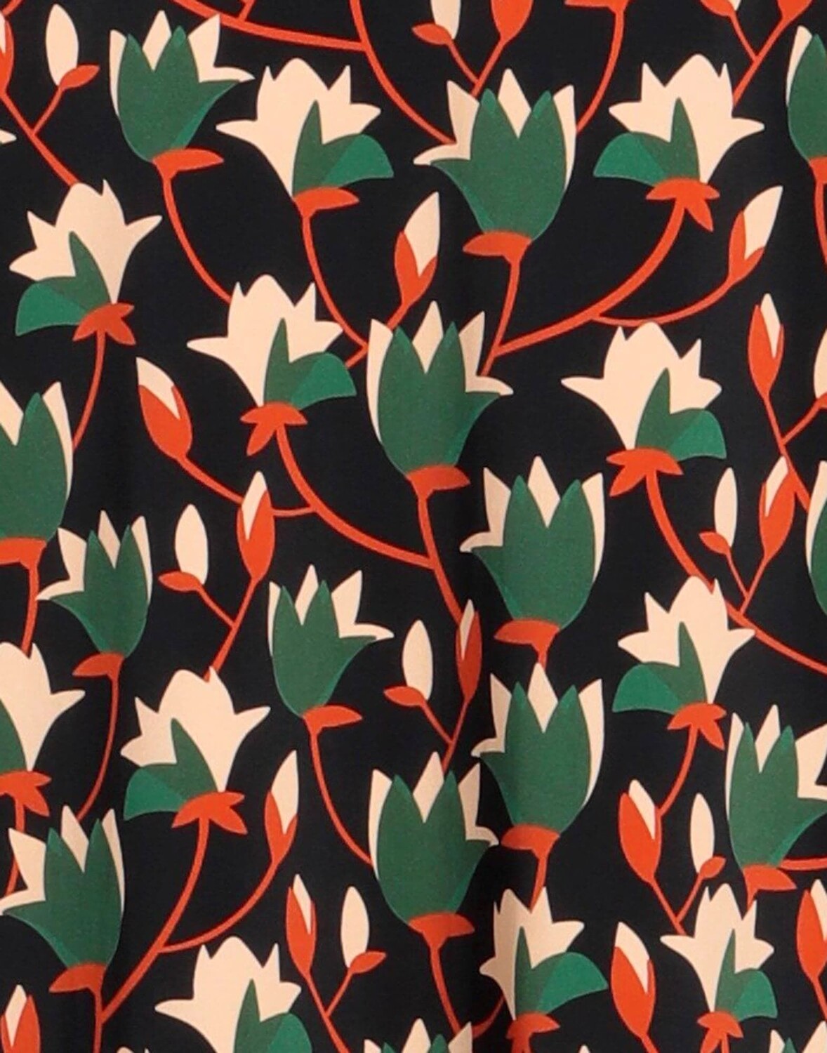 Синтетический трикотаж, без аппликаций, цветочный принт, круглый вырез, длинные рукава, без подкладки, без карманов, стрейч, фасон трапеция