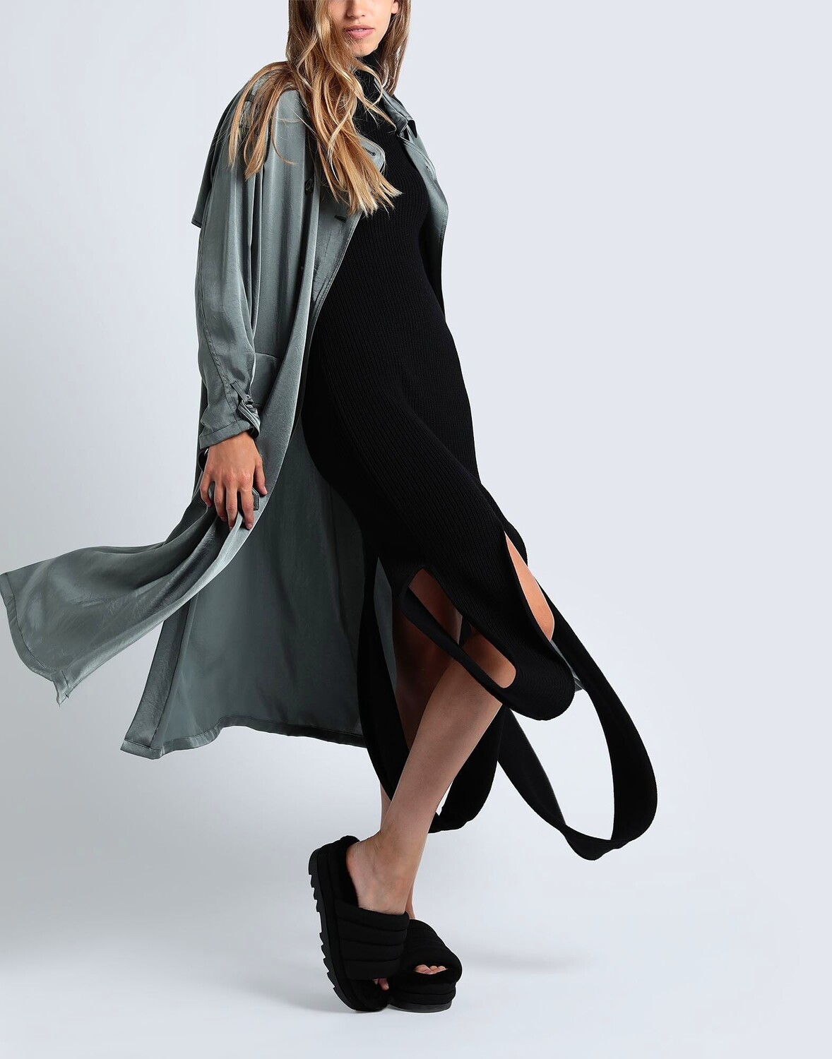 Трикотажное, плотный трикотаж, без аппликаций, однотонное, водолазка, длинные рукава, без подкладки, без карманов, асимметричное платье