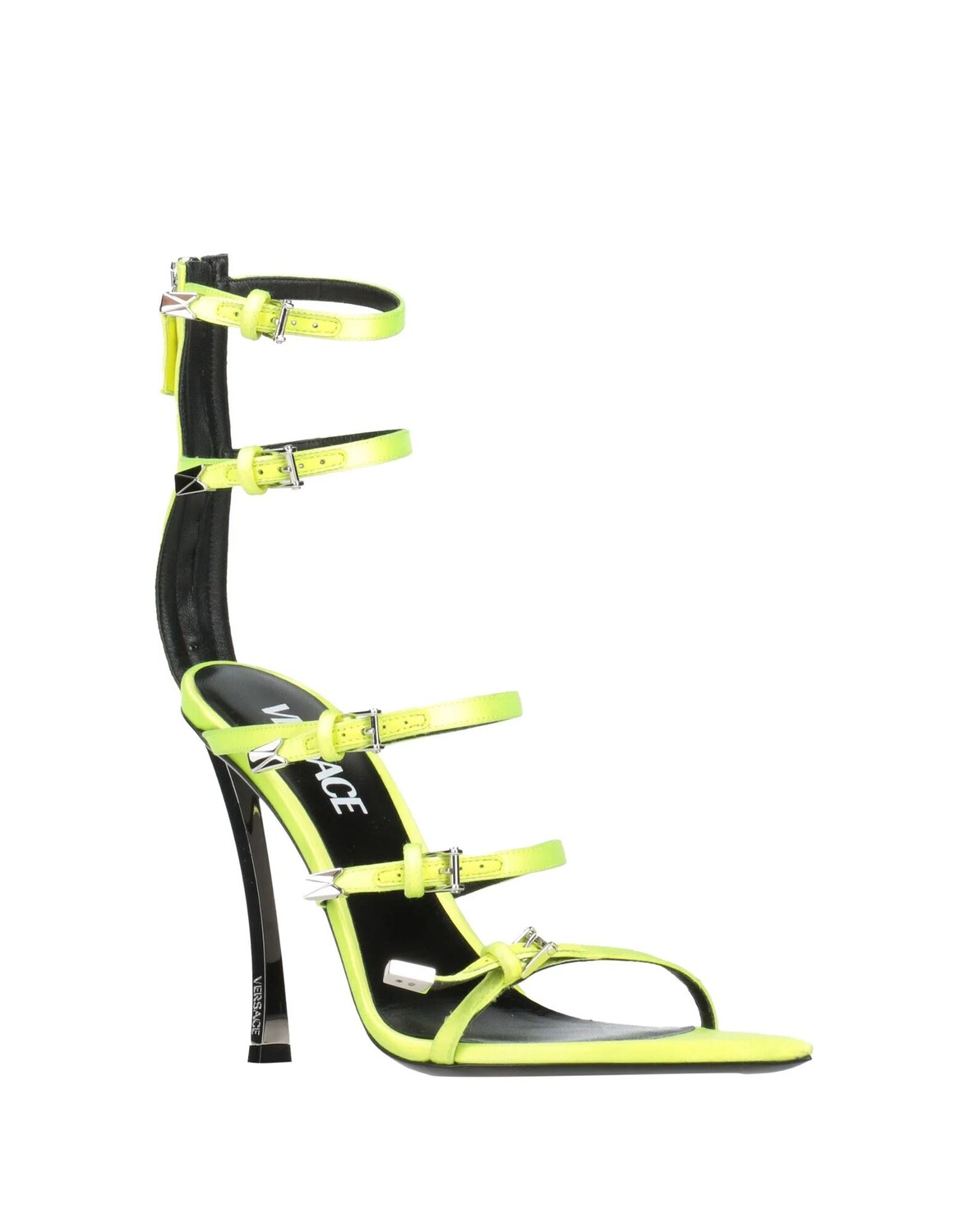 Атлас, без аппликаций, одноцветное изделие, кожаная подкладка, ремешок с пряжкой на щиколотке, застежка-молния, узкий носок, геометрический каблук, кожаная подошва, гладиаторские сандалии
