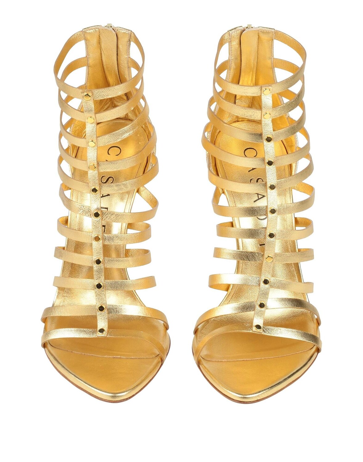 Кожа, металлик, заклепки, одноцветное изделие с аппликациями, подкладка кожа, застежка-молния, острый носок, каблук-щипок, кожаная подошва, содержит нетекстильные части животного происхождения, сандалии-гладиаторы