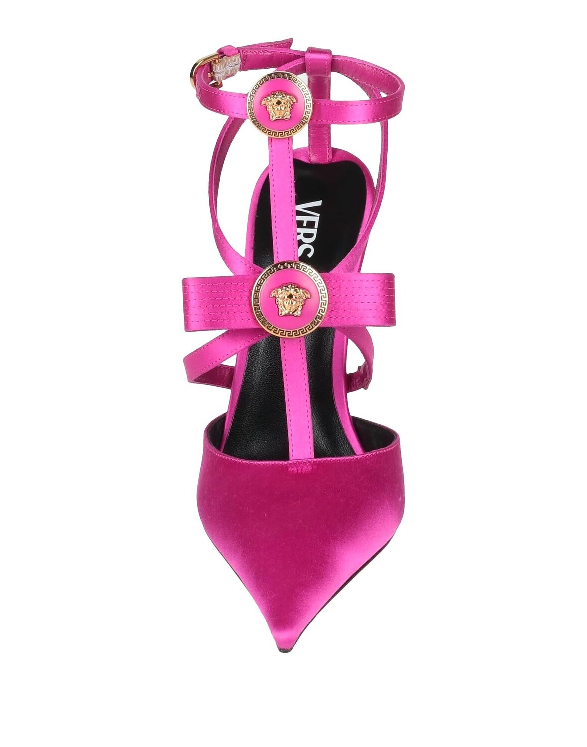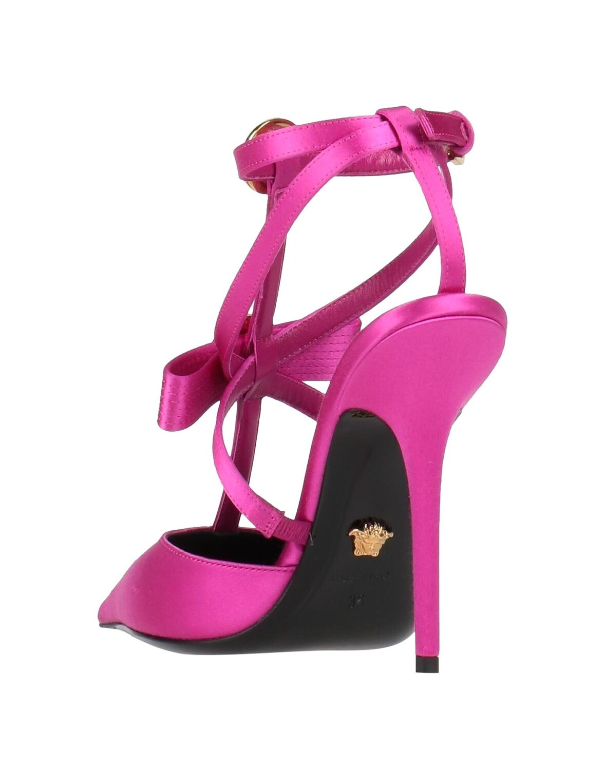 Сатин, логотип бренда, декорирование, одноцветное изделие, подкладка из кожи, ремешок на щиколотке с пряжкой, острый носок, конический каблук, обтянутый каблук, кожано-резиновая подошва, содержит нетекстильные части животного происхождения, Т-образная планка