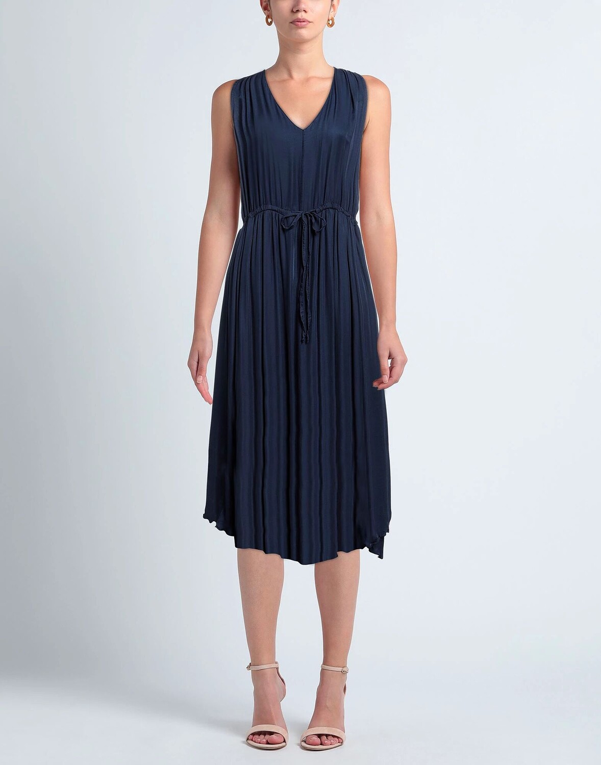 Саржа, без аппликаций, одноцветное изделие, V-образный вырез, без рукавов, внутренняя часть на частичной подкладке, застежка на шнурке, без карманов, фасон трапеция