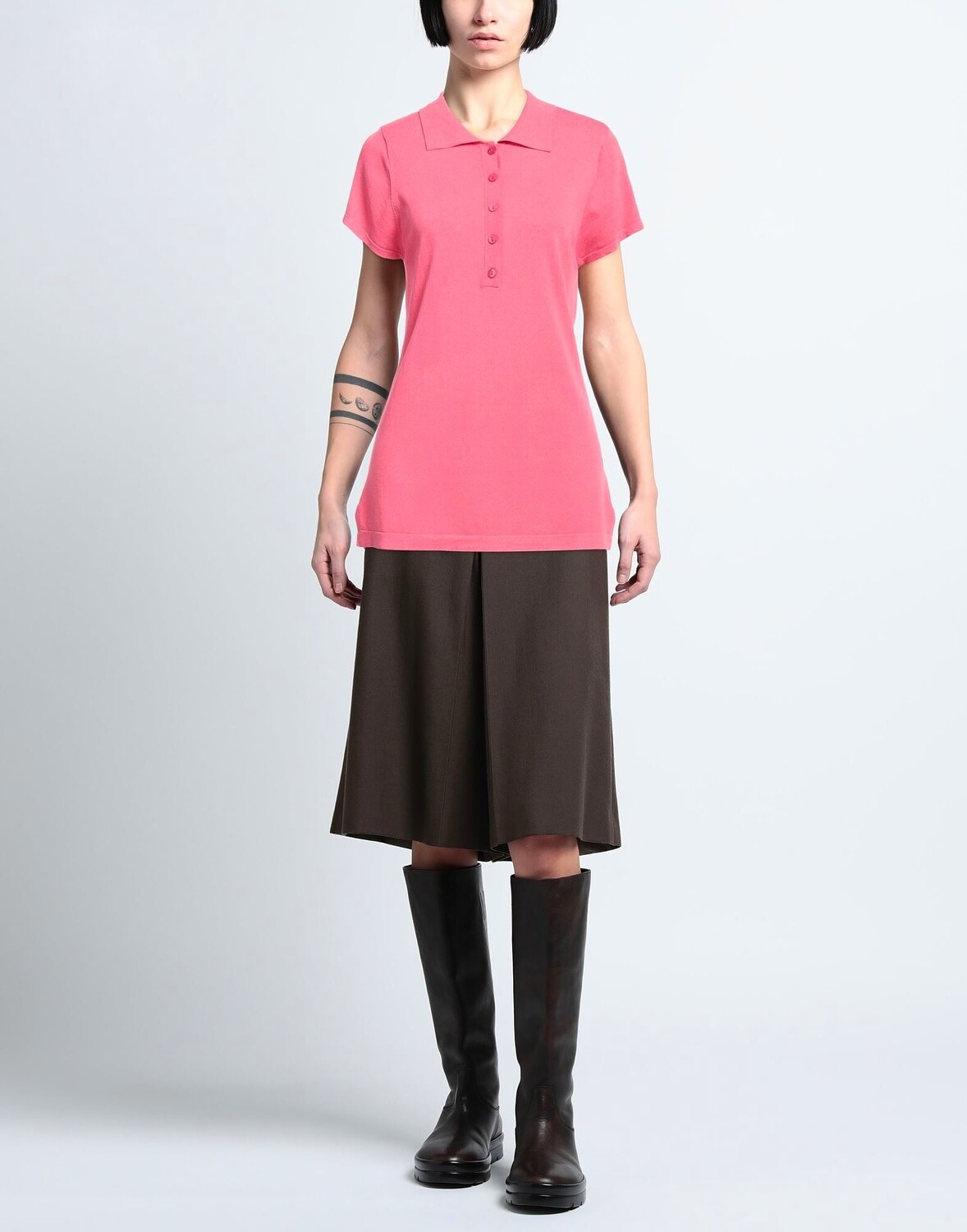 Трикотаж, легкий трикотаж, без аппликаций, одноцветное изделие, воротник-поло, короткие рукава, застежка на пуговицы, без карманов, по низу боковой разрез