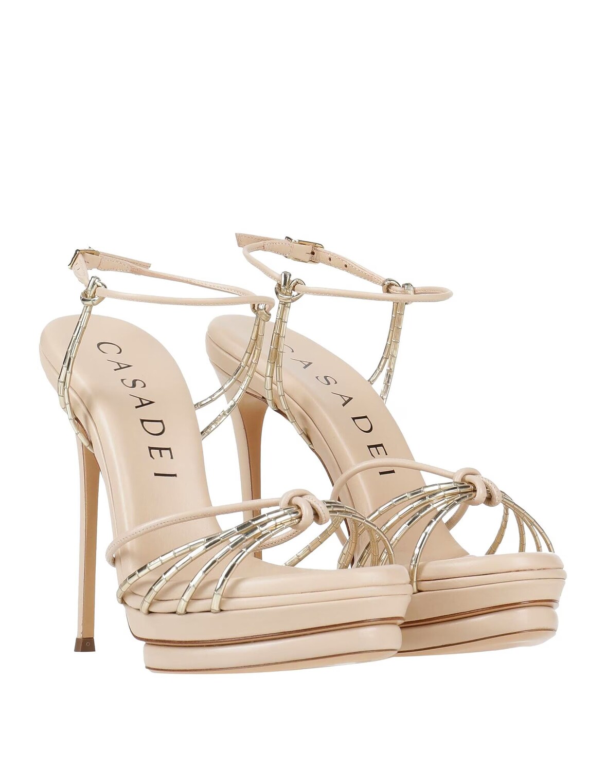 Босоножки с ремешком на щиколотке, кожаные, металлик, без аппликаций, двухцветные, подкладка кожа, ремешок на щиколотке с пряжкой, круглый носок, каблук-шип, кожаная подошва, содержит нетекстильные части животного происхождения