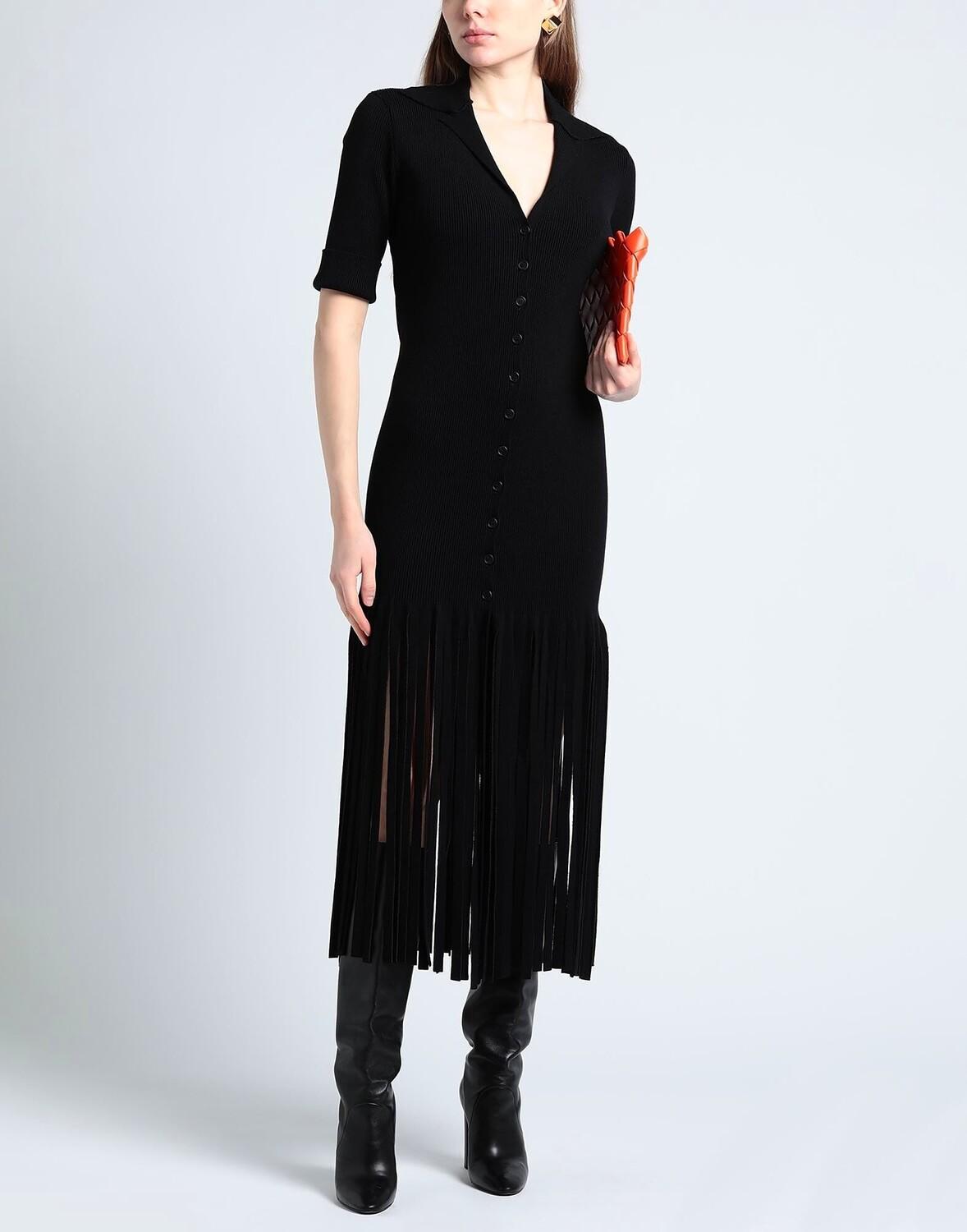 Трикотаж, легкий трикотаж, бахрома, одноцветное изделие, воротник с лацканами, рукава 3/4, без подкладки, пуговицы, платье-рубашка