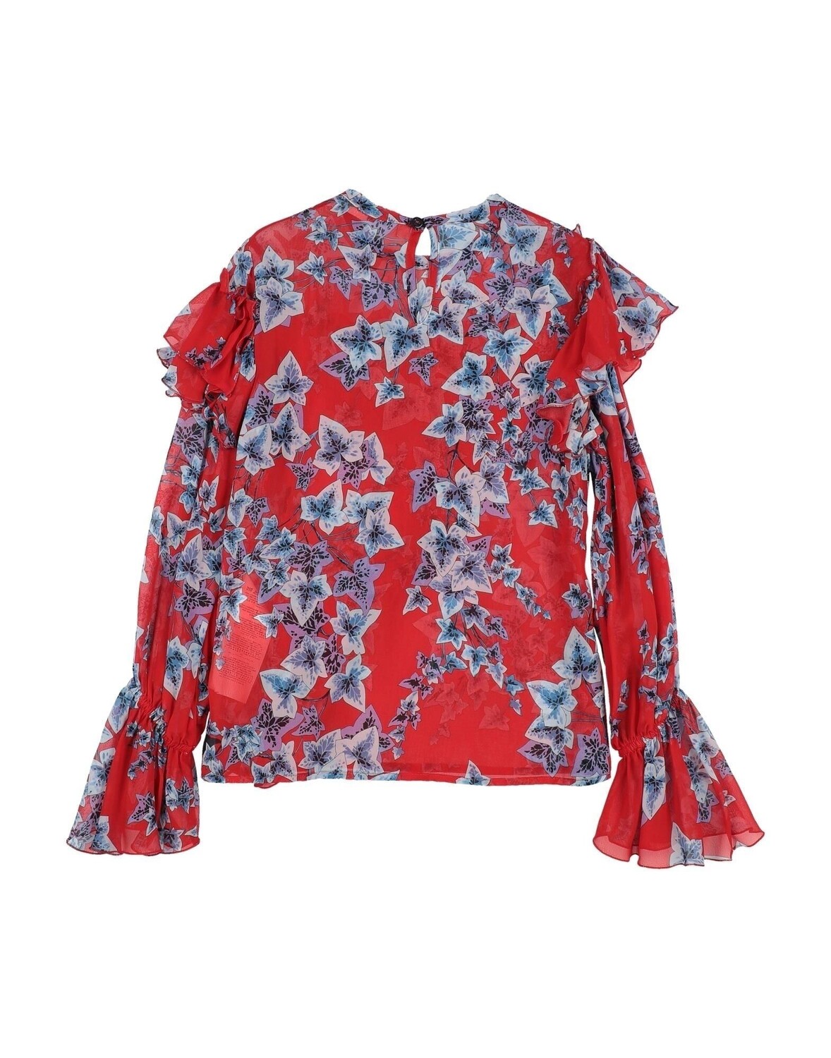 Креп, оборки, цветочный принт, круглый вырез, длинные рукава, без карманов, нельзя стирать, подлежит химчистке, нельзя отбеливать, нельзя сушить в стиральной машине, гладить при температуре не выше 110°C