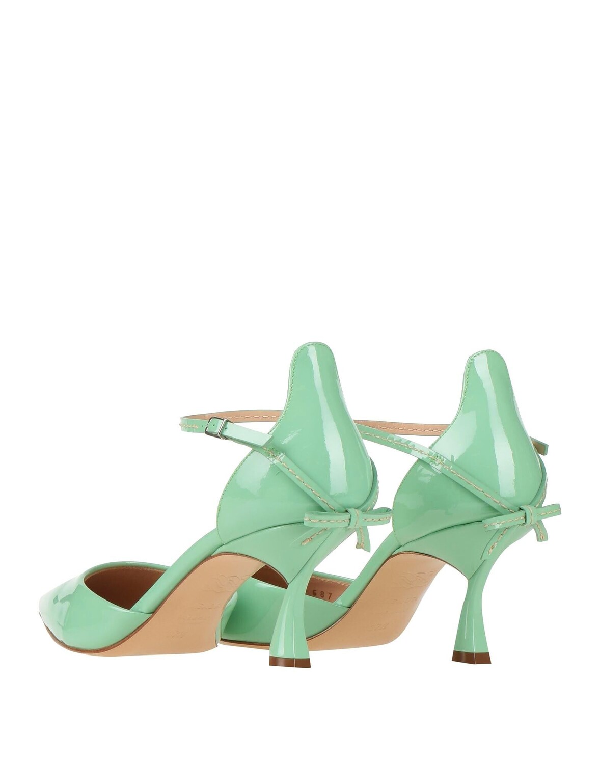 Лакированная кожа, бантик, одноцветное изделие с аппликациями, кожаная подкладка, острый носок, каблук-катушка, кожаная подошва, содержит нетекстильные части животного происхождения, туфли-лодочки с ремешком на щиколотке