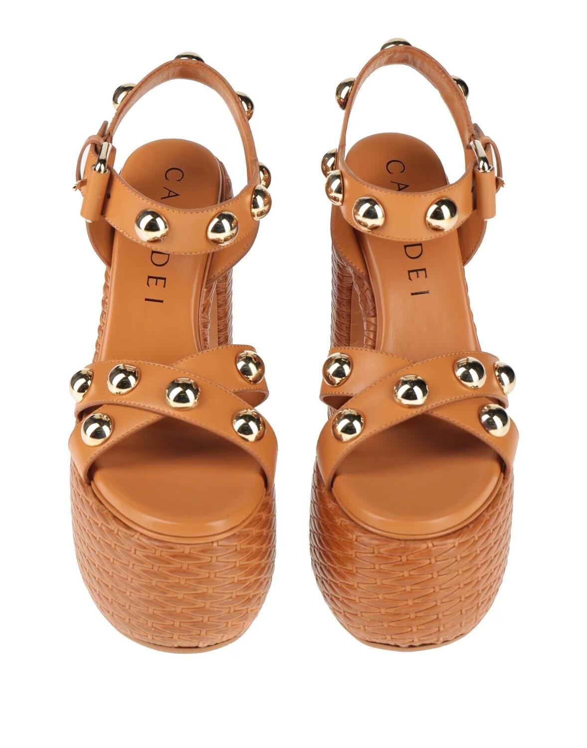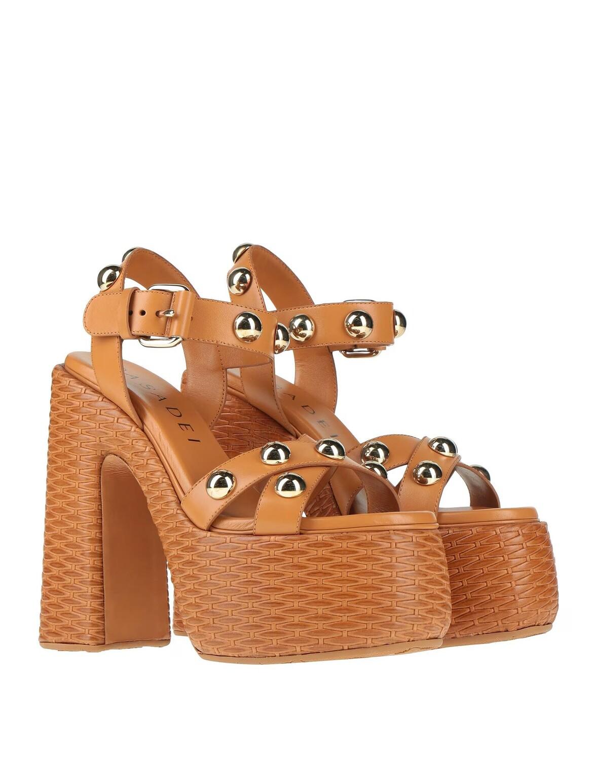 Босоножки с ремешком на щиколотке, кожа, заклепки, одноцветное изделие с аппликациями, подкладка из кожи, ремешок на щиколотке с пряжкой, круглый носок, геометрический каблук, подошва из кожи/резины, содержит нетекстильные части животного происхождения