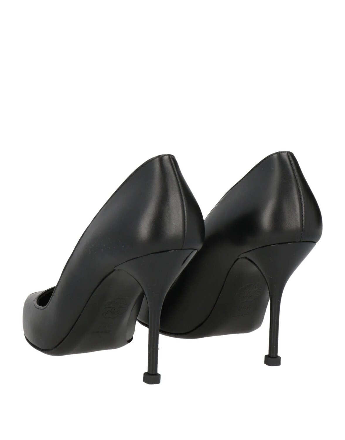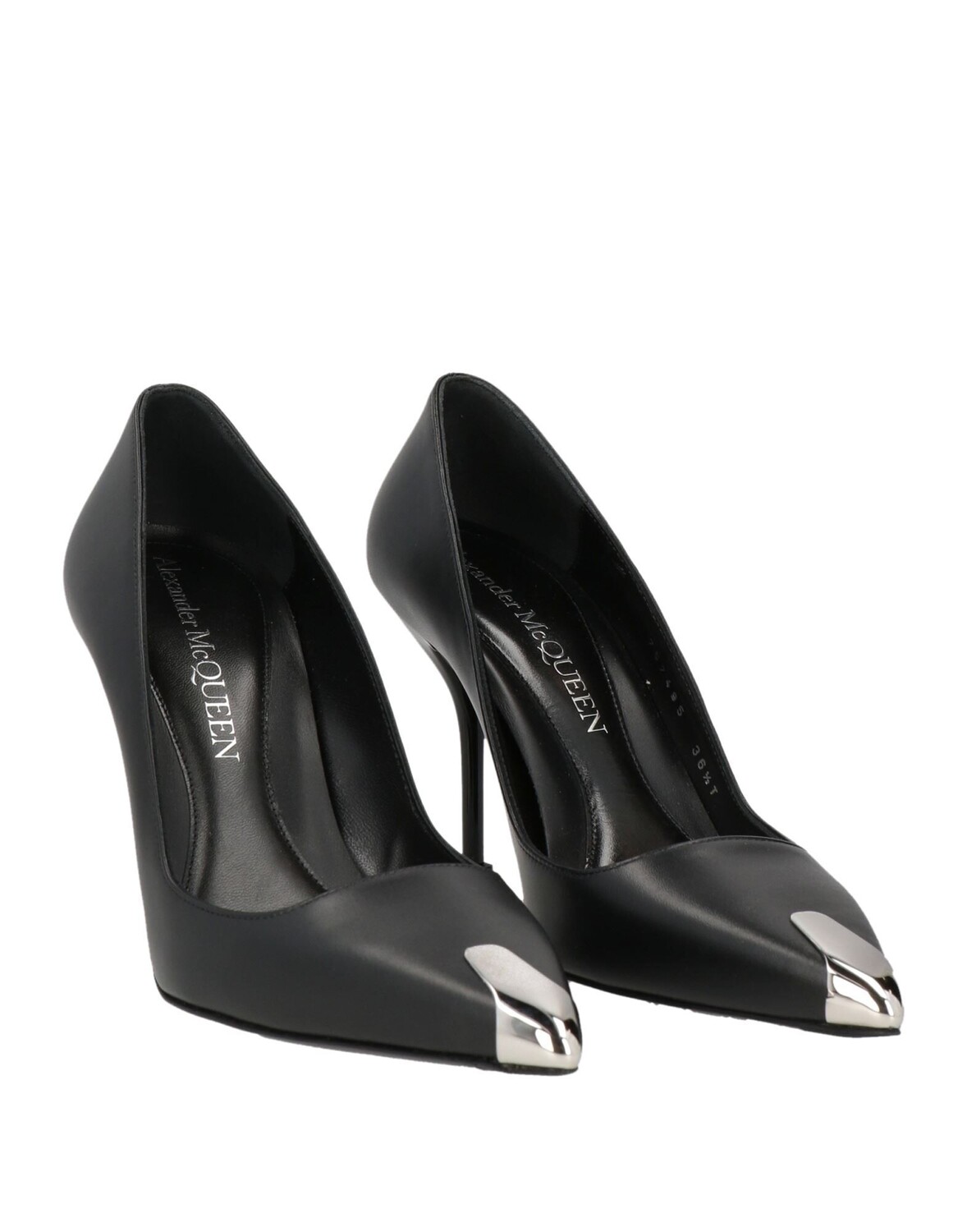 Туфли на шпильке, кожаные, декорированные, одноцветное изделие с аппликациями, подкладка кожаная, острый носок, каблук-щипок, кожаная подошва, содержит нетекстильные части животного происхождения
