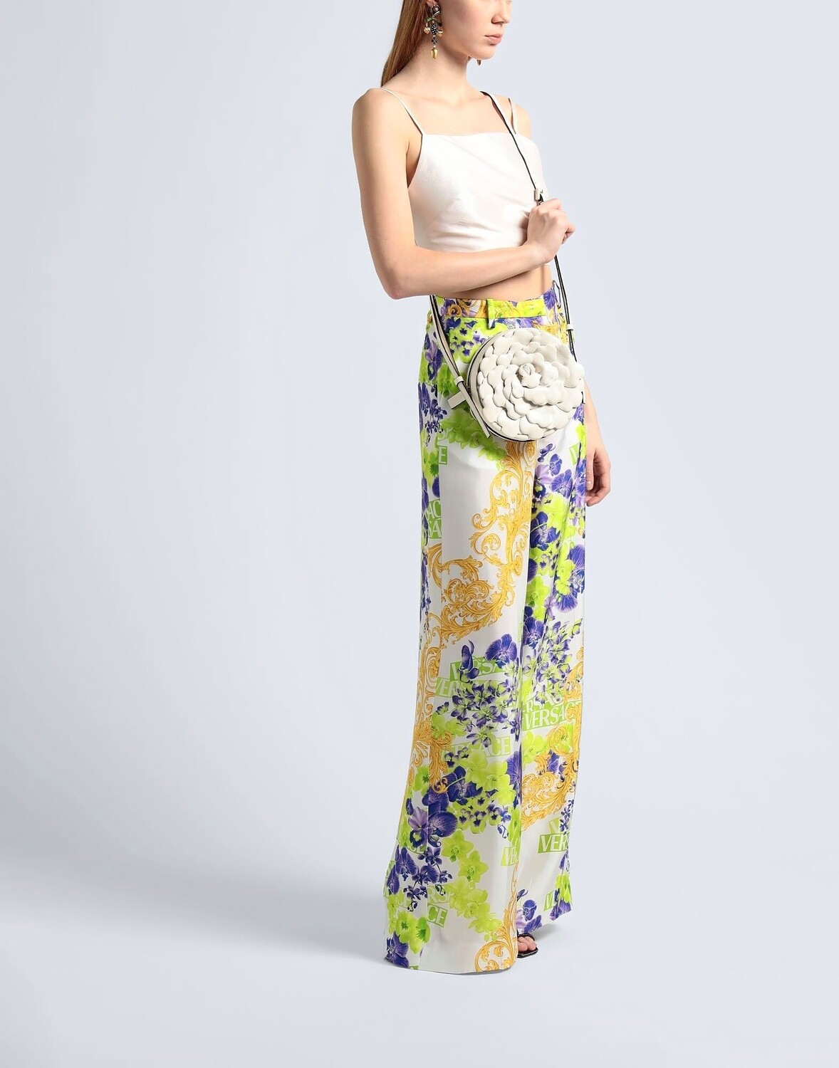 Атлас, логотип бренда, цветочный принт, завышенная талия, прямые брючины, классический крой, застежка-молния, застежка на крючки, множество карманов, машинная стирка или химчистка, нельзя сушить в стиральной машине, не отбеливать, индивидуальный заказ