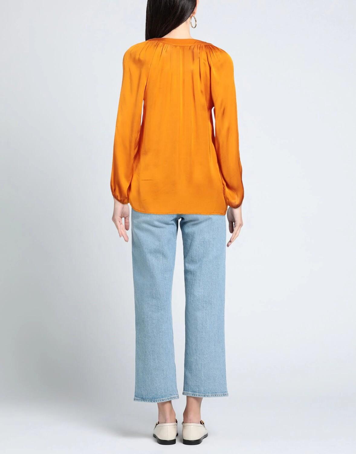 Атлас, присборенный, однотонный, v-образный вырез, длинные рукава, богемная блузка