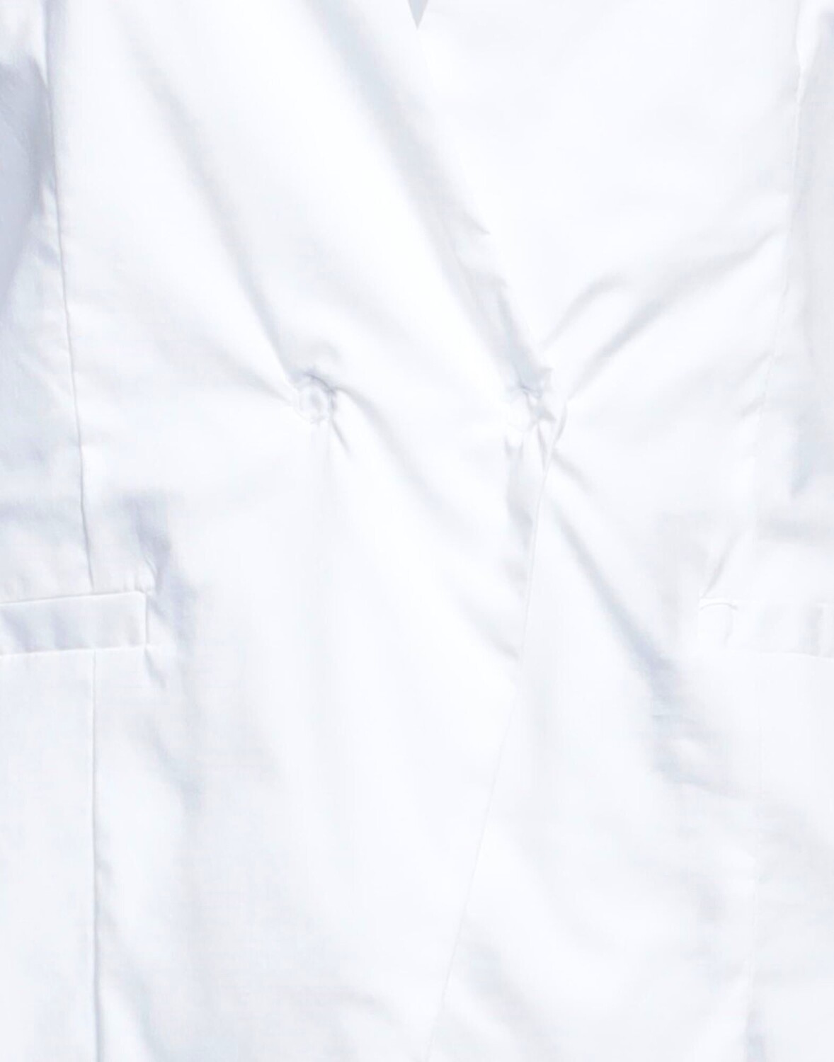 Полотняное переплетение, без аппликаций, двухцветное, V-образный вырез, двубортный, длинные рукава, без подкладки, застежка на кнопки, множество карманов, стрейч, двубортный пиджак