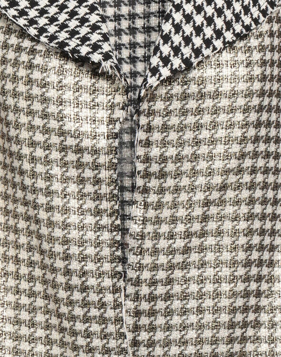 Твид, ламе, без аппликаций, «гусиные лапки», воротник с лацканами, однобортный, длинные рукава, без подкладки, без карманов