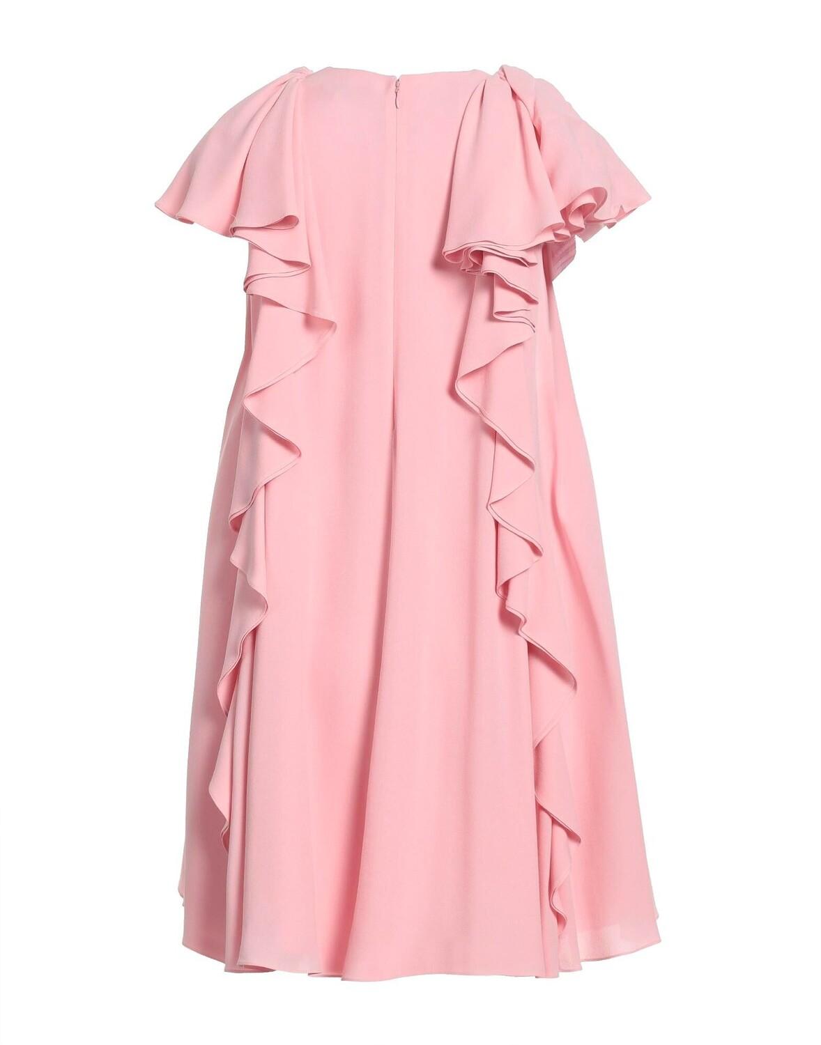 Креп, оборки, одноцветное изделие, круглый вырез, короткие рукава, на подкладке, застежка-молния, без карманов, расклешенное платье