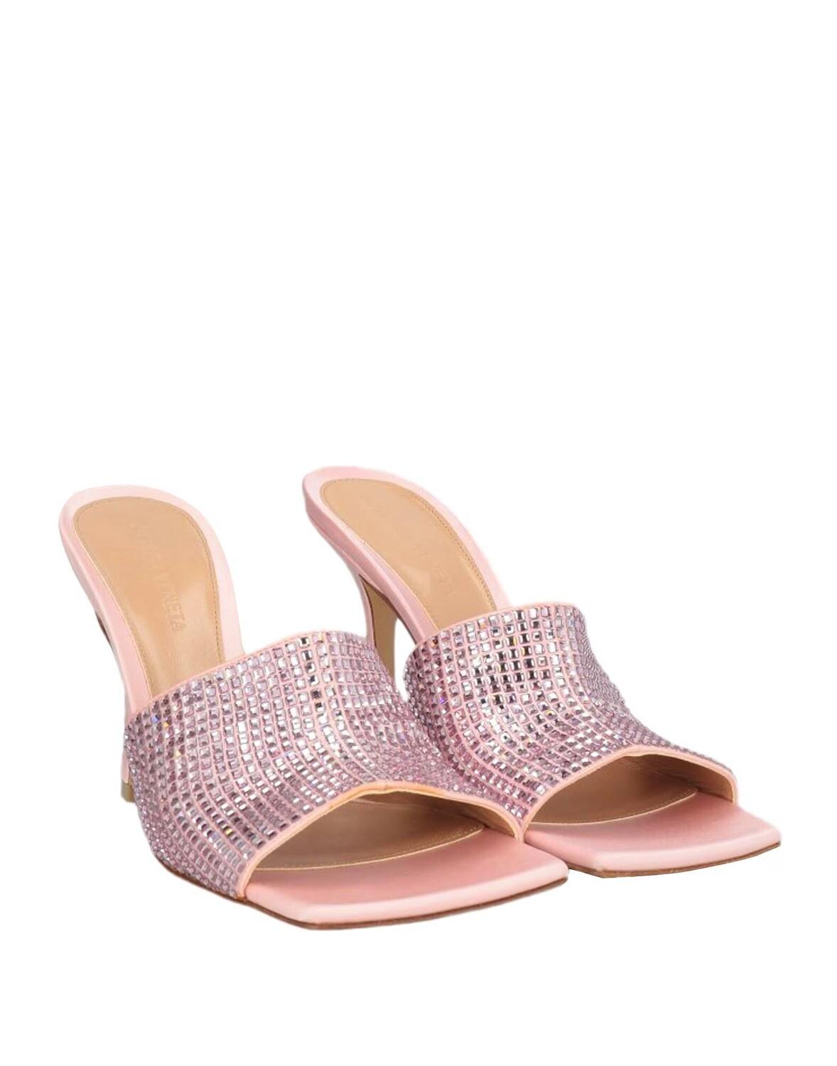 Шлепанцы, атлас, кристаллы, одноцветное изделие с аппликациями, подкладка из кожи, квадратный носок, геометрический каблук, обтянутый каблук, кожаная/резиновая подошва, содержит нетекстильные части животного происхождения, большого размера