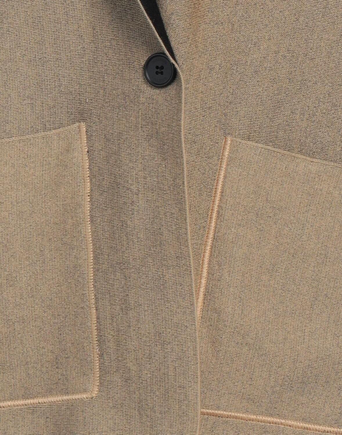 Трикотаж, легкая вязка, без аппликаций, двухцветный, воротник с лацканами, длинные рукава, застежка на пуговицы, множество карманов, двусторонняя сторона, ручная стирка или химчистка, не отбеливать, нельзя сушить в стиральной машине, однобортный пиджак