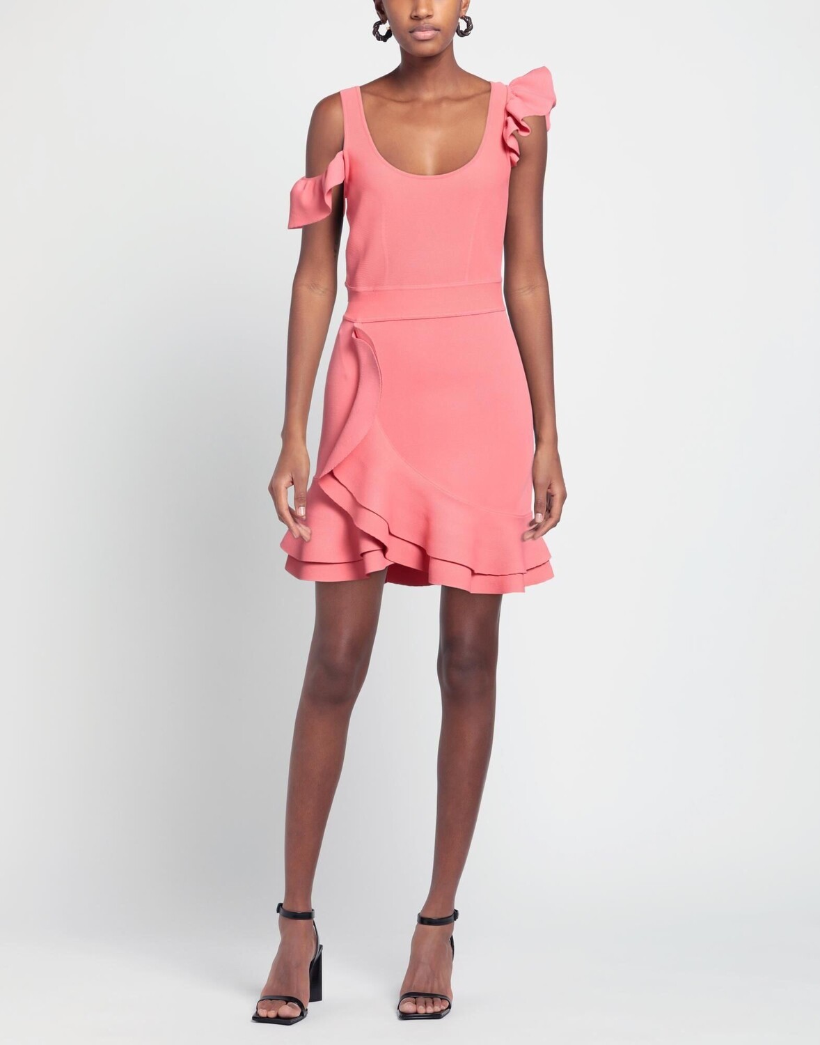 Трикотаж, средней плотности, оборки, однотонное изделие с аппликациями, широкий вырез горловины, короткие рукава, без подкладки, застежка-молния, без карманов, стрейч, фасон трапеция