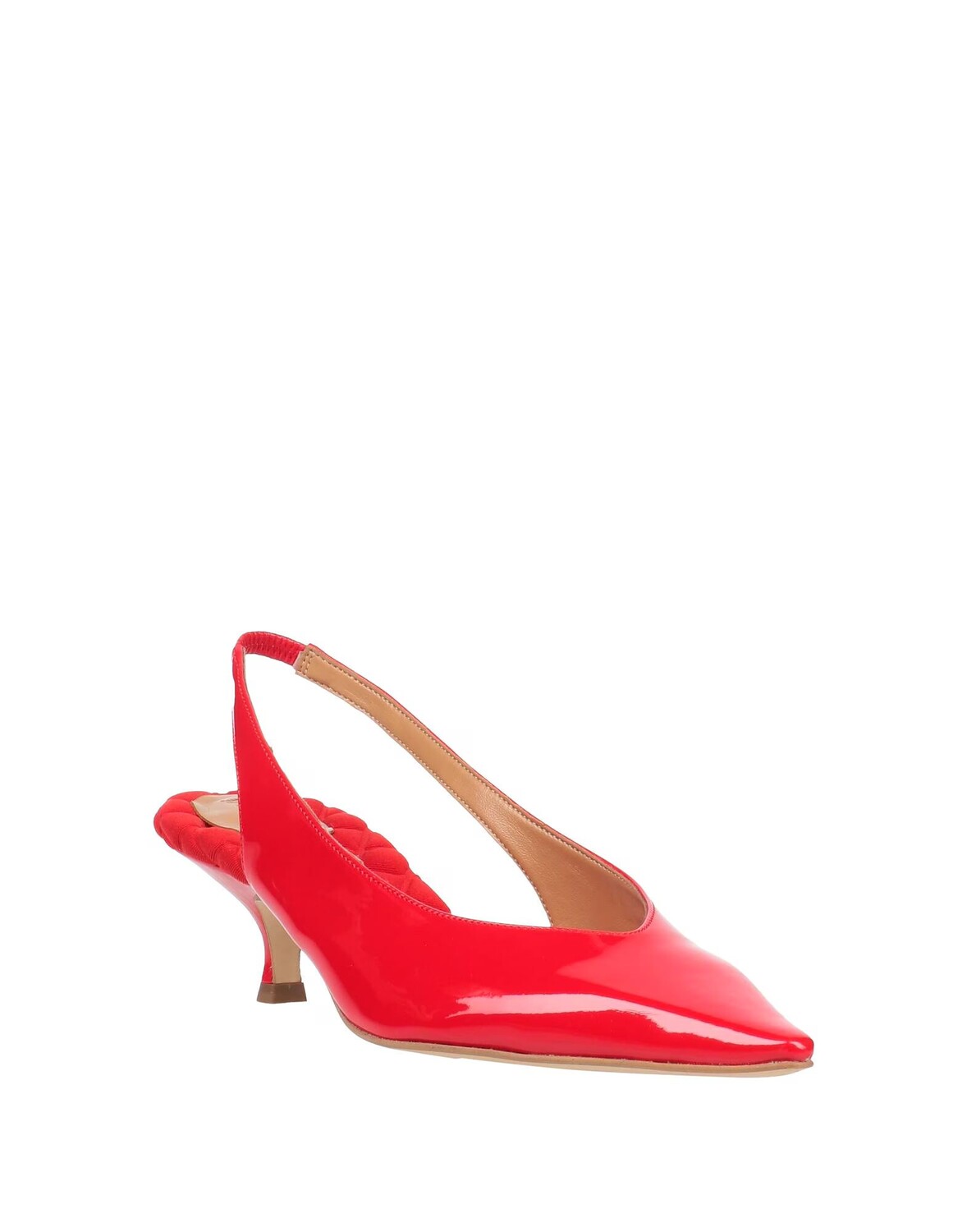 Ткань с покрытием, патент-эффект, без аппликаций, одноцветное изделие, внутренняя часть из ткани, эластичные вставки, острый носок, конический каблук, подошва из эко-кожи, туфли-лодочки с пяткой на пятке