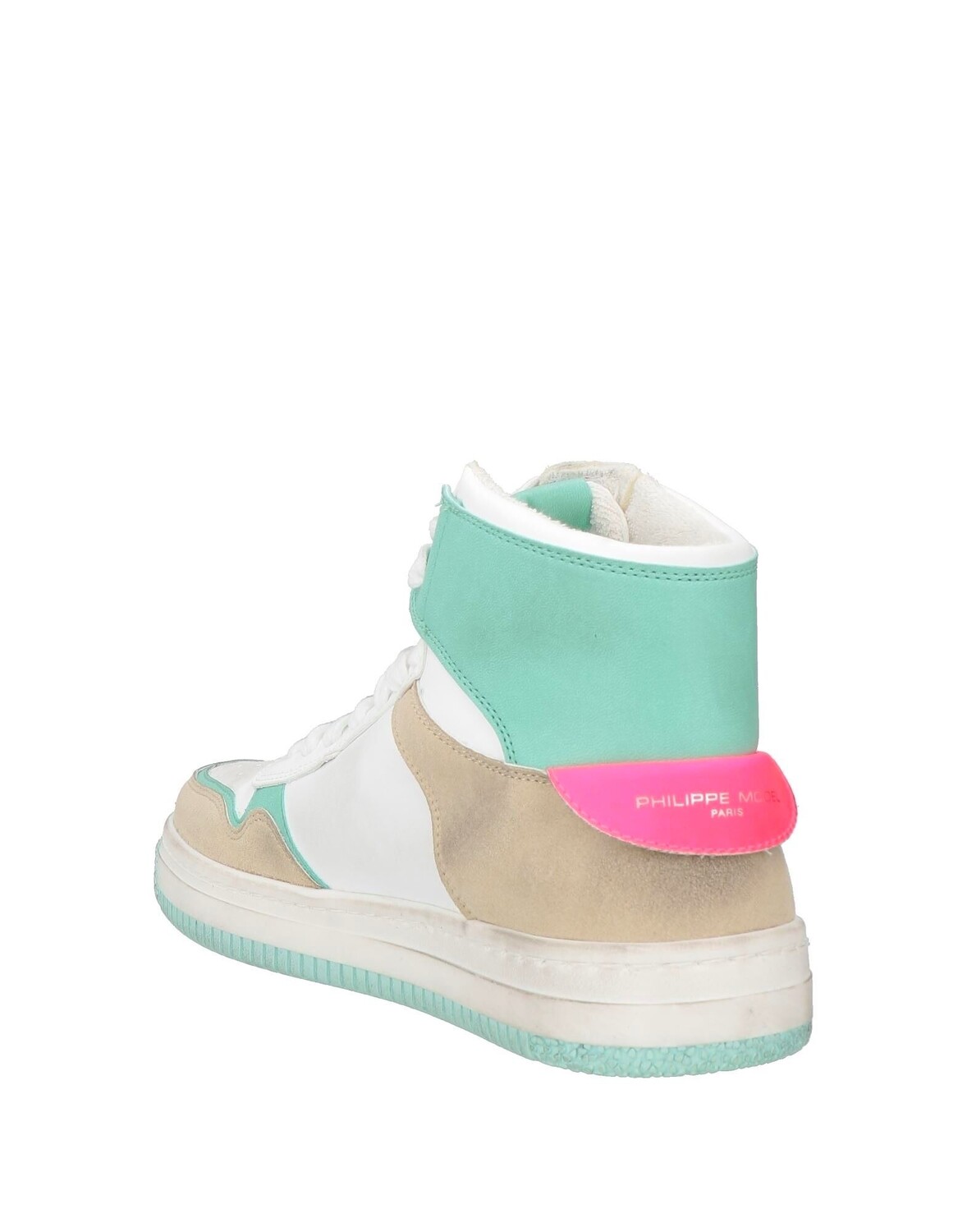 Кожа, техническая ткань, эффект замши, логотип бренда, многоцветный рисунок, внутренняя поверхность из ткани, шнуровка, скругленный носок, без каблука, подошва с ушками, содержит нетекстильные части животного происхождения, высокие кеды и кроссовки