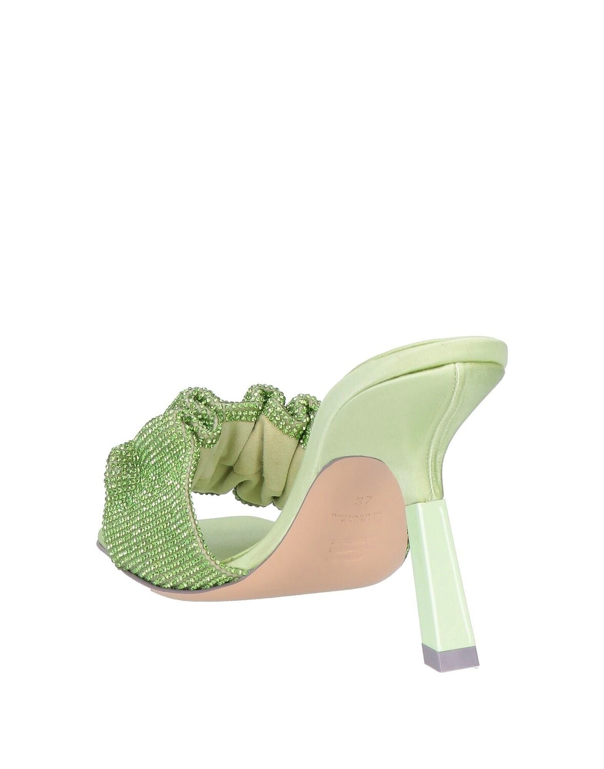Сатин, кристаллы, одноцветное изделие с аппликациями, кожаная подкладка, квадратный носок, каблук-катушка, кожаная подошва, ручная работа, содержит нетекстильные части животного происхождения, шлепанцы