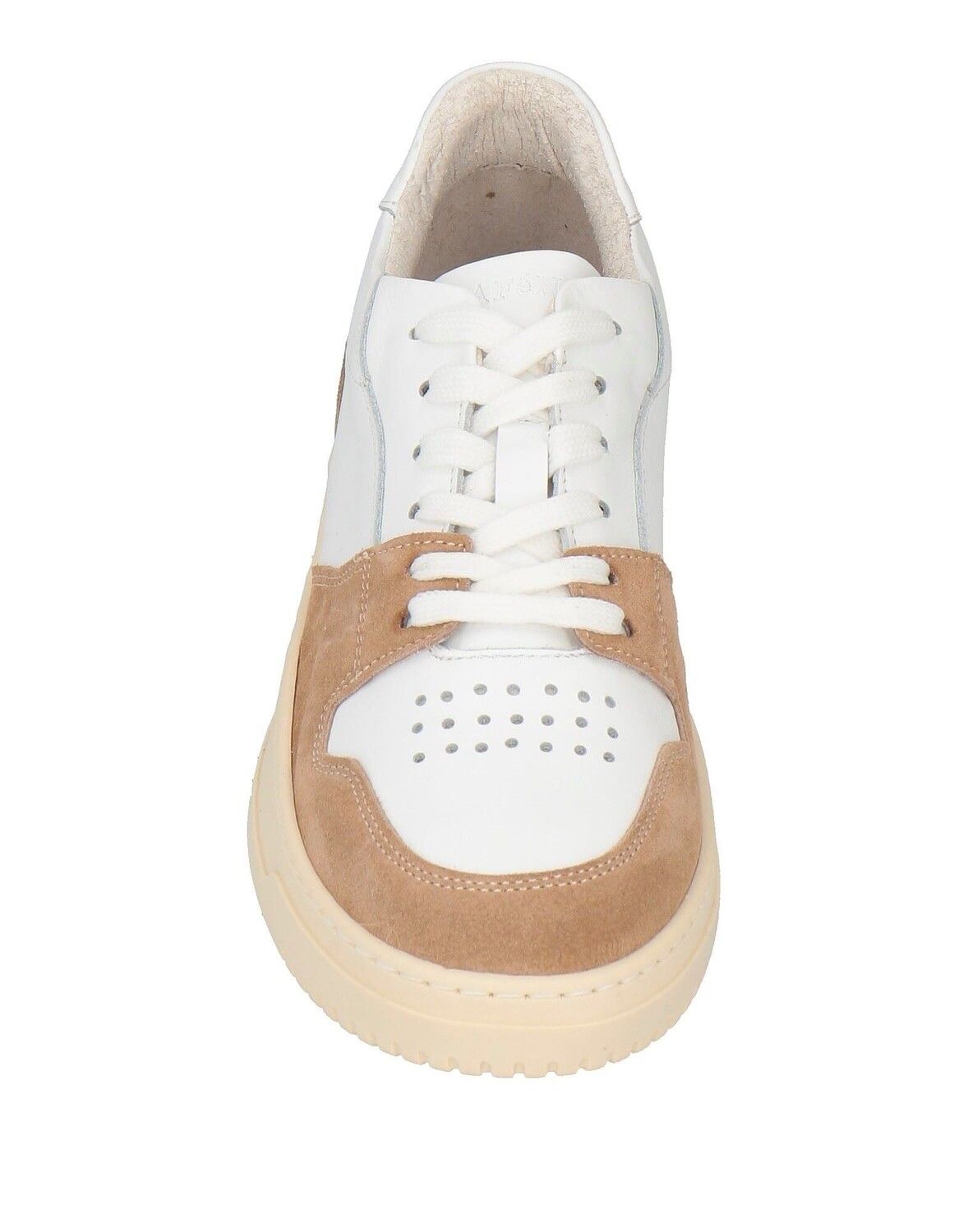 Кожа, эффект замши, логотип бренда, двухцветный цвет, подкладка из кожи, шнуровка, скругленный носок, без каблука, резиновая подошва с тиснением, содержит нетекстильные части животного происхождения, низкие кеды и кроссовки