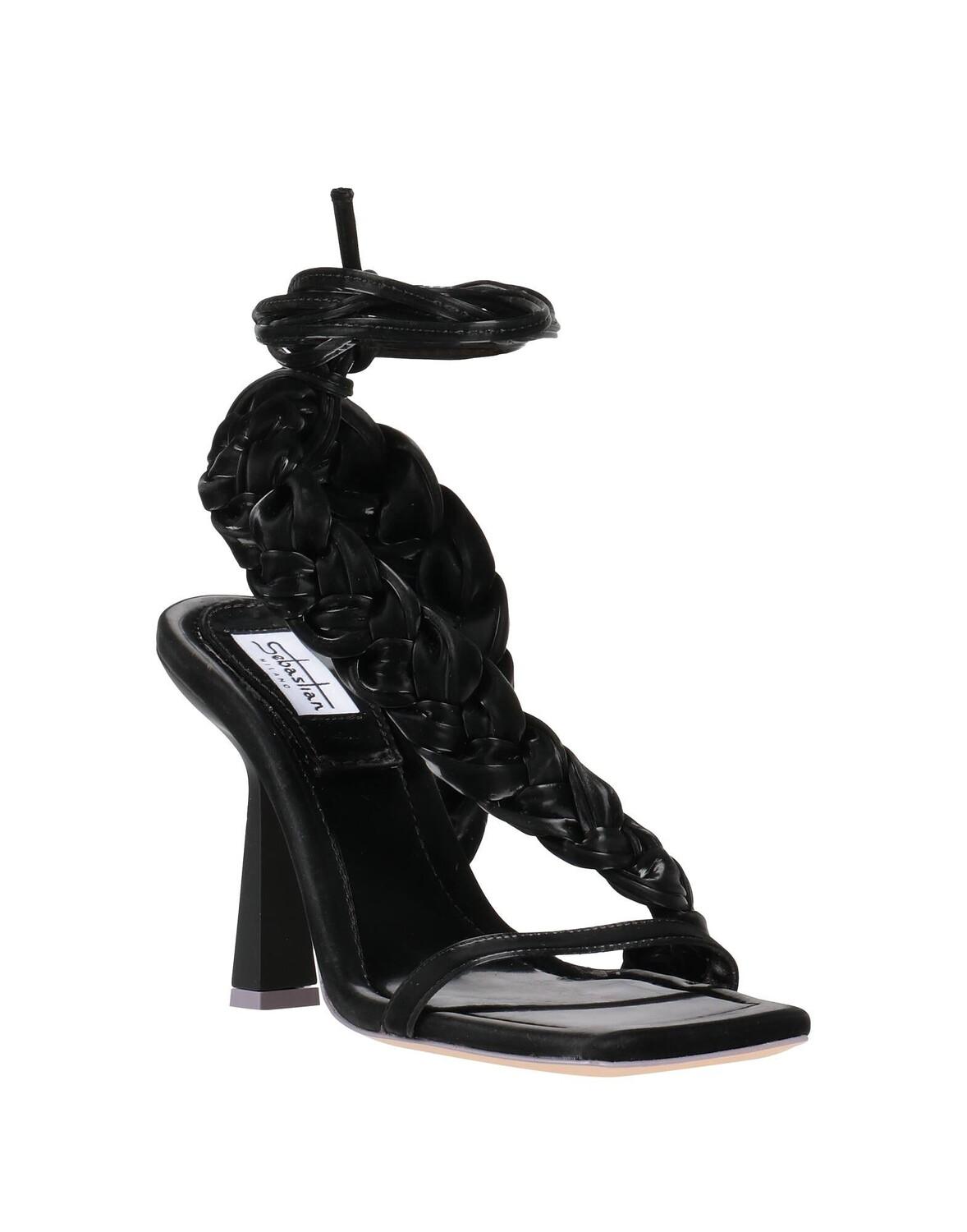 Ткань с покрытием, без аппликаций, одноцветное изделие, подкладка из кожи, завязки на щиколотке, квадратный носок, каблук-катушка, кожаная подошва, содержит нетекстильные части животного происхождения, босоножки на шнуровке