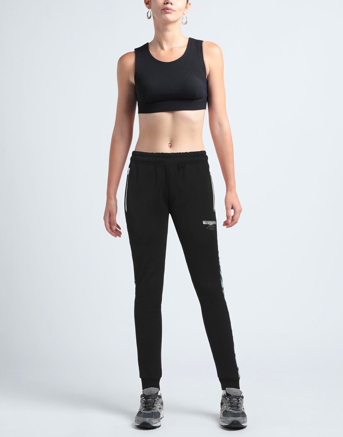 Толстовка флис, полосы по бокам, логотип бренда, одноцветное изделие с аппликациями, завышенная талия, зауженные брючины, стандартный крой, подкладка из французского махрового материала, застежка на шнурок, множество карманов, карман на молнии, спортивный стиль