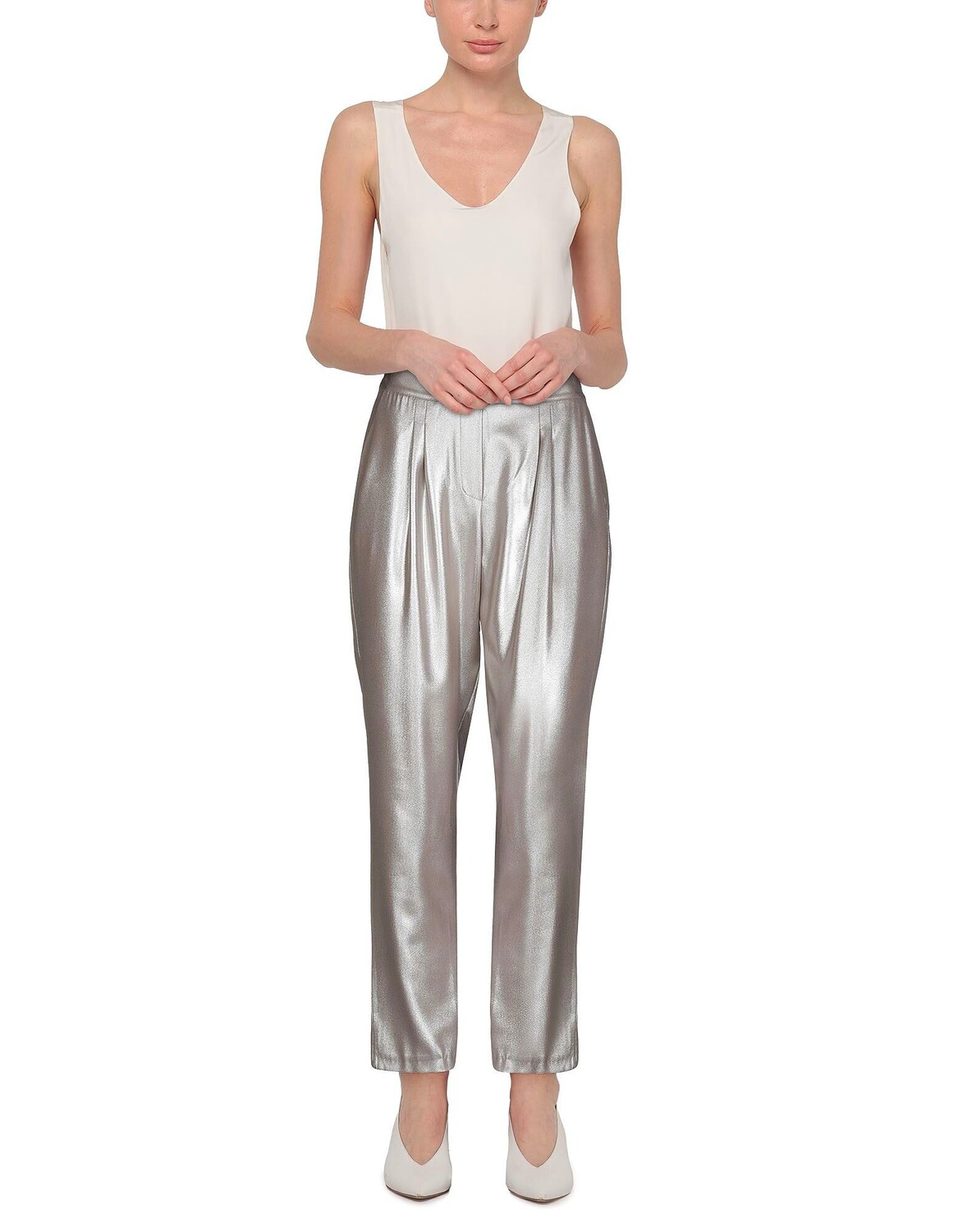 Зауженные брюки, креп, одноцветное изделие, без аппликаций, завышенная талия, стандартный крой, застежка-молния, множество карманов