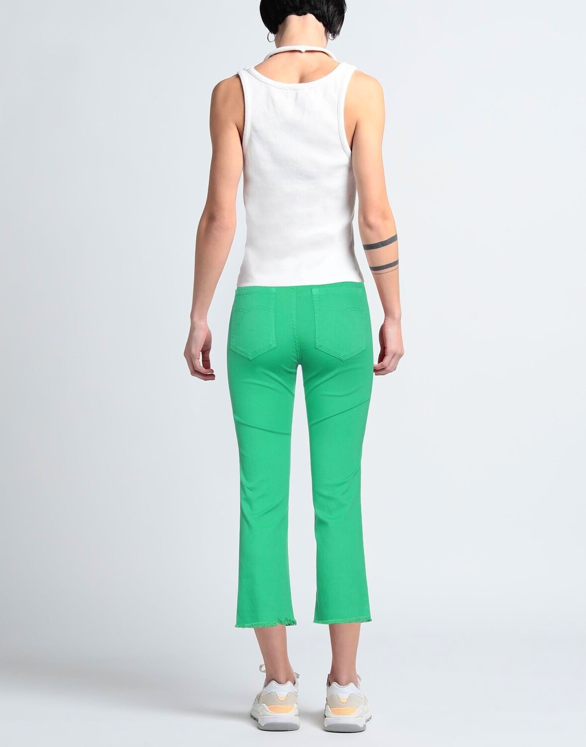Джинсовая ткань, логотип бренда, вышивка, одноцветное изделие, цветная расцветка, завышенная талия, прямые брючины, стандартный крой, застежка-молния, 1 пуговица, необработанный низ, множество карманов, стрейч, модель прямого кроя