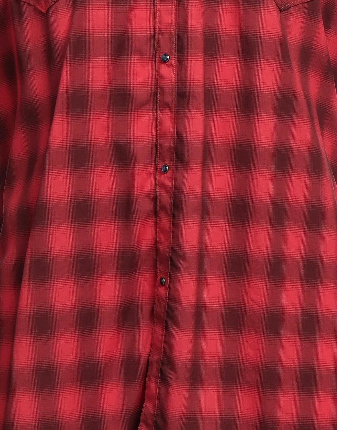 Полотняное переплетение, логотип бренда, узор «тартан», классический вырез горловины, длинные рукава, застежка на кнопки, два нагрудных кармана