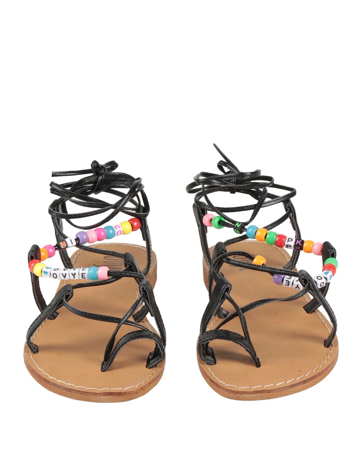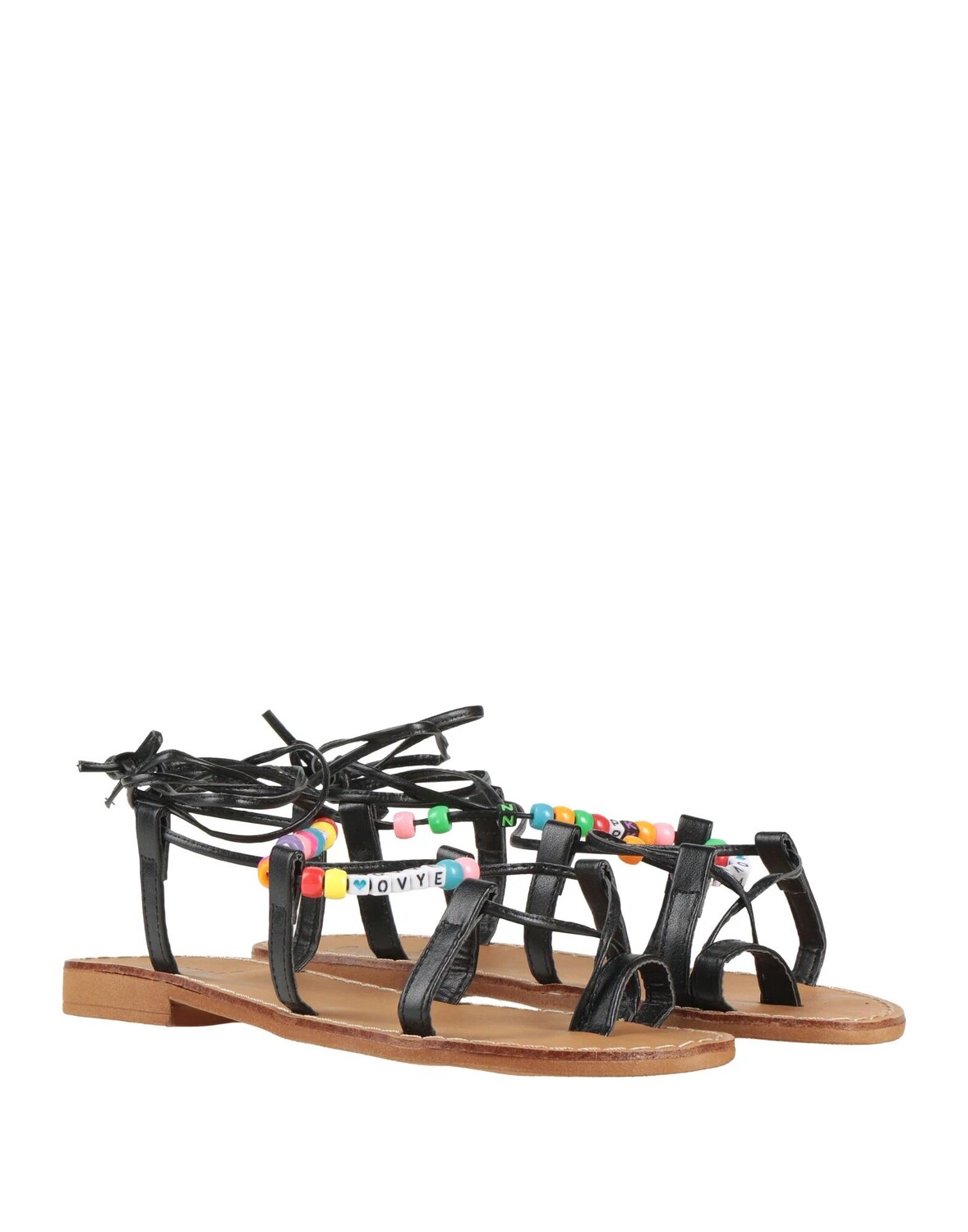 Босоножки на шнуровке, ткань с покрытием, декорированные, однотонные с аппликациями, на подкладке, завязки на щиколотке, круглый носок, плоская подошва, резиновая подошва