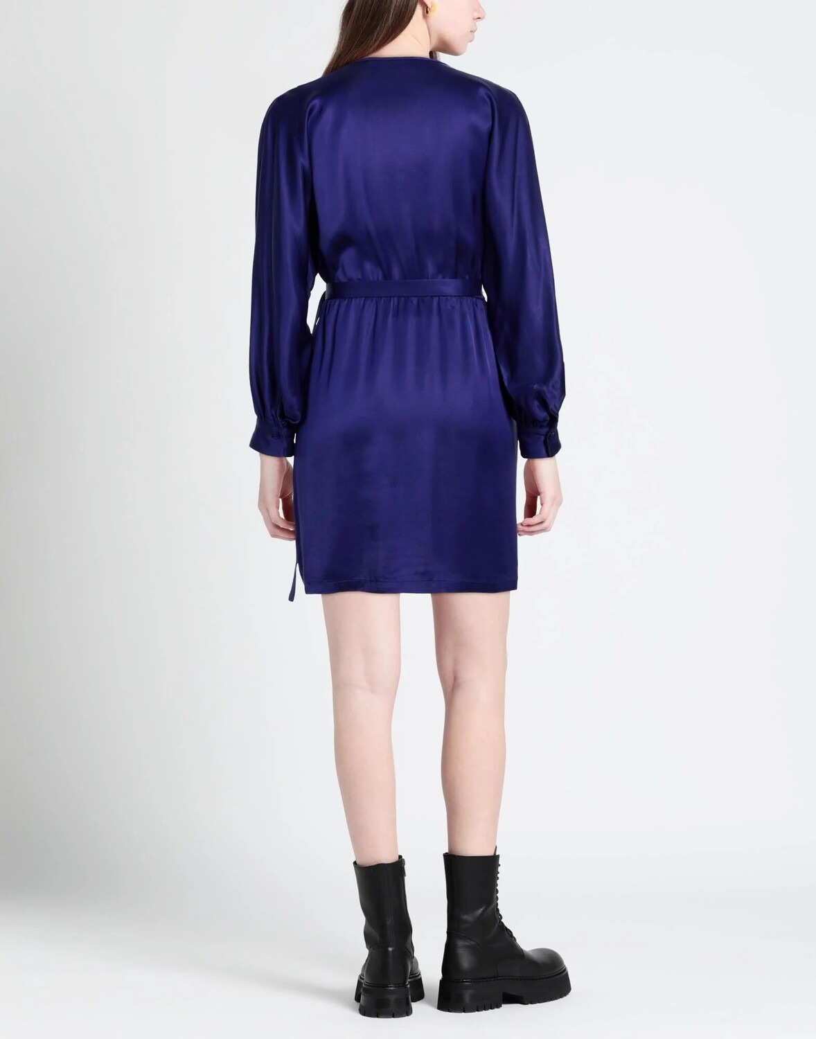Атлас, пояс, одноцветное изделие, глубокий вырез, длинные рукава, манжеты на пуговицах, без подкладки, без карманов, фасон-карандаш