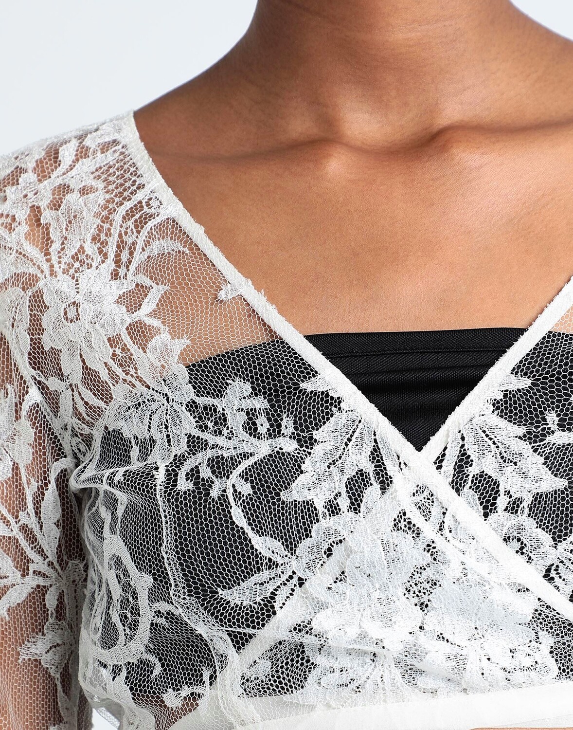 Кружево, легкий трикотаж, без аппликаций, одноцветное изделие, глубокий вырез, длинные рукава, завязка, без карманов