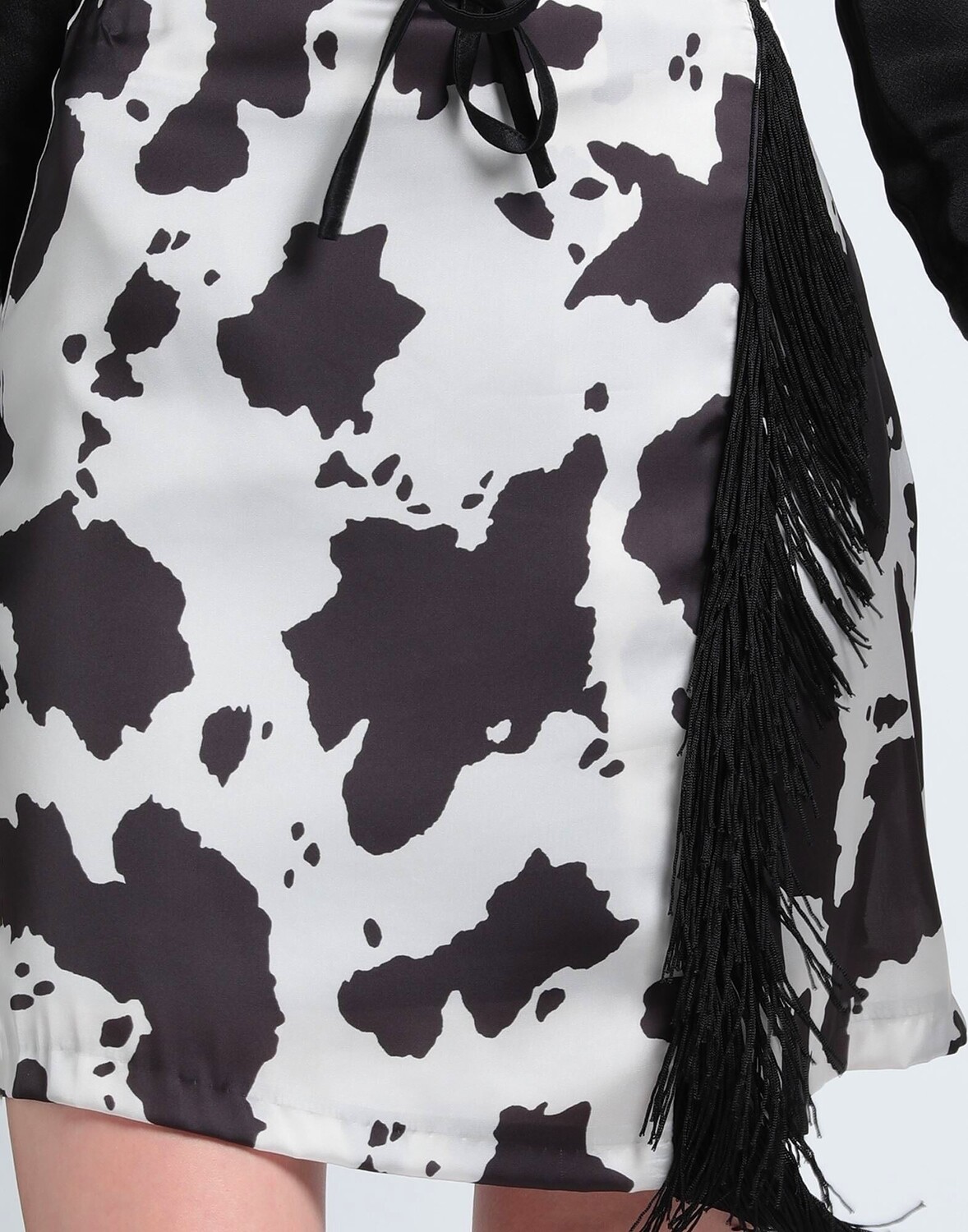 Атлас, бахрома, анималистический принт, полностью на подкладке, застежка-молния, без карманов, расклешенная модель