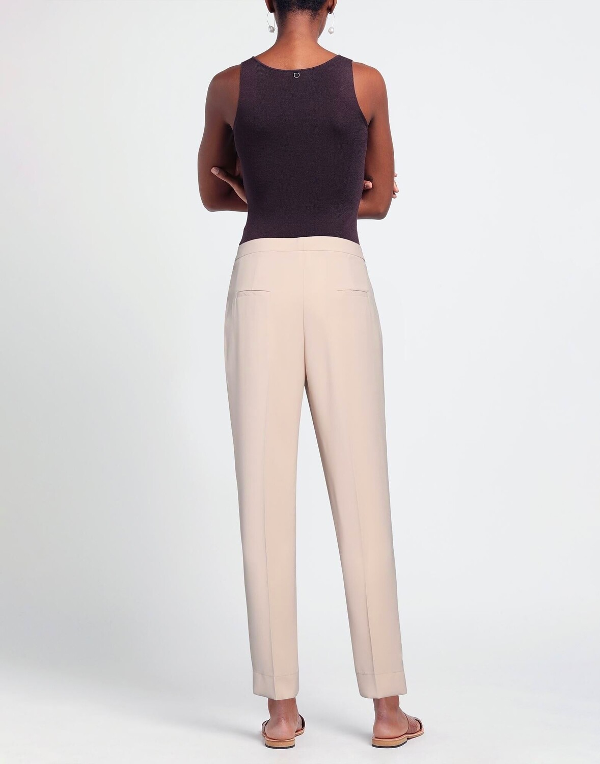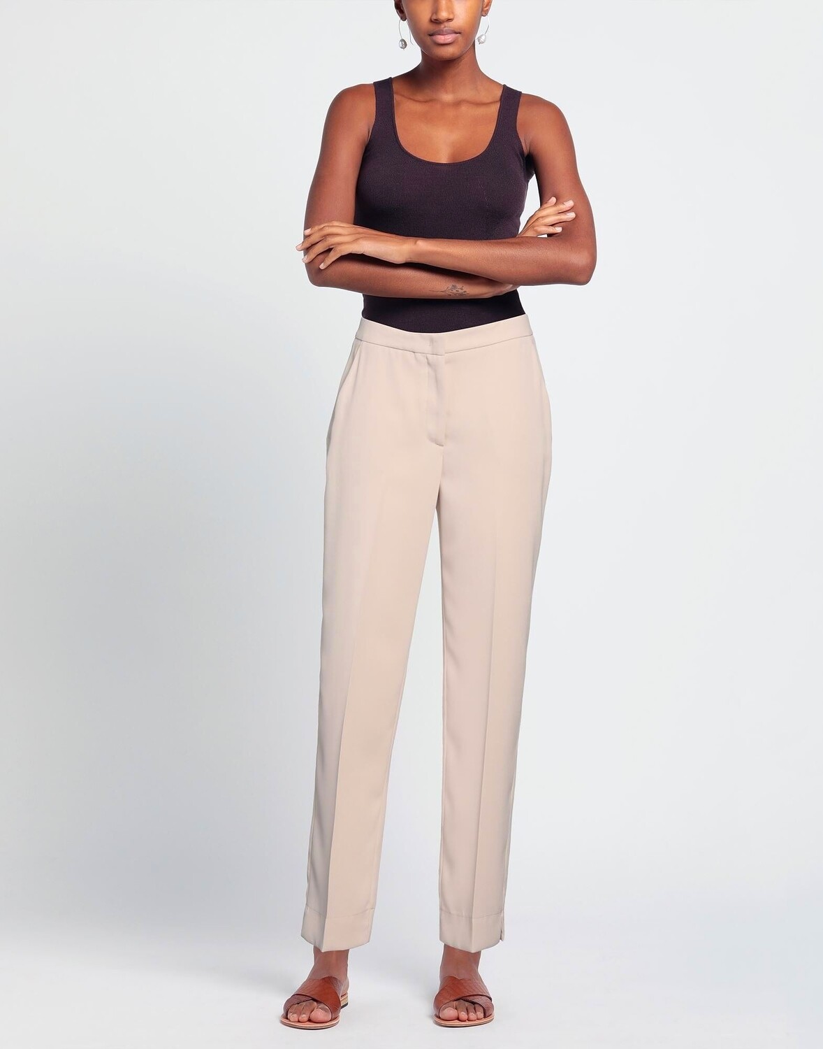 Кади, без аппликаций, одноцветное изделие, высокая талия, стандартный крой, застежка-молния, застежка на крючки, низ с боковыми разрезами, множество карманов, машинная стирка или химчистка, не отбеливать, не сушить в стиральной машине, брюки прямого кроя, маломерный размер этой марки