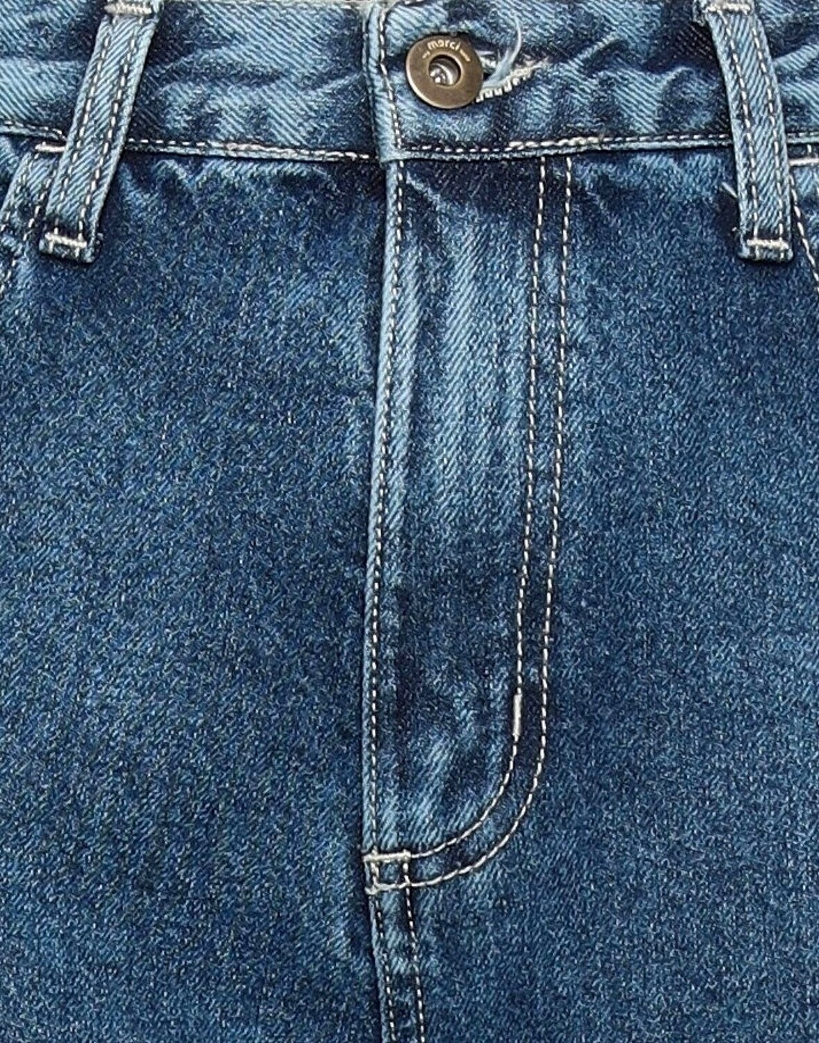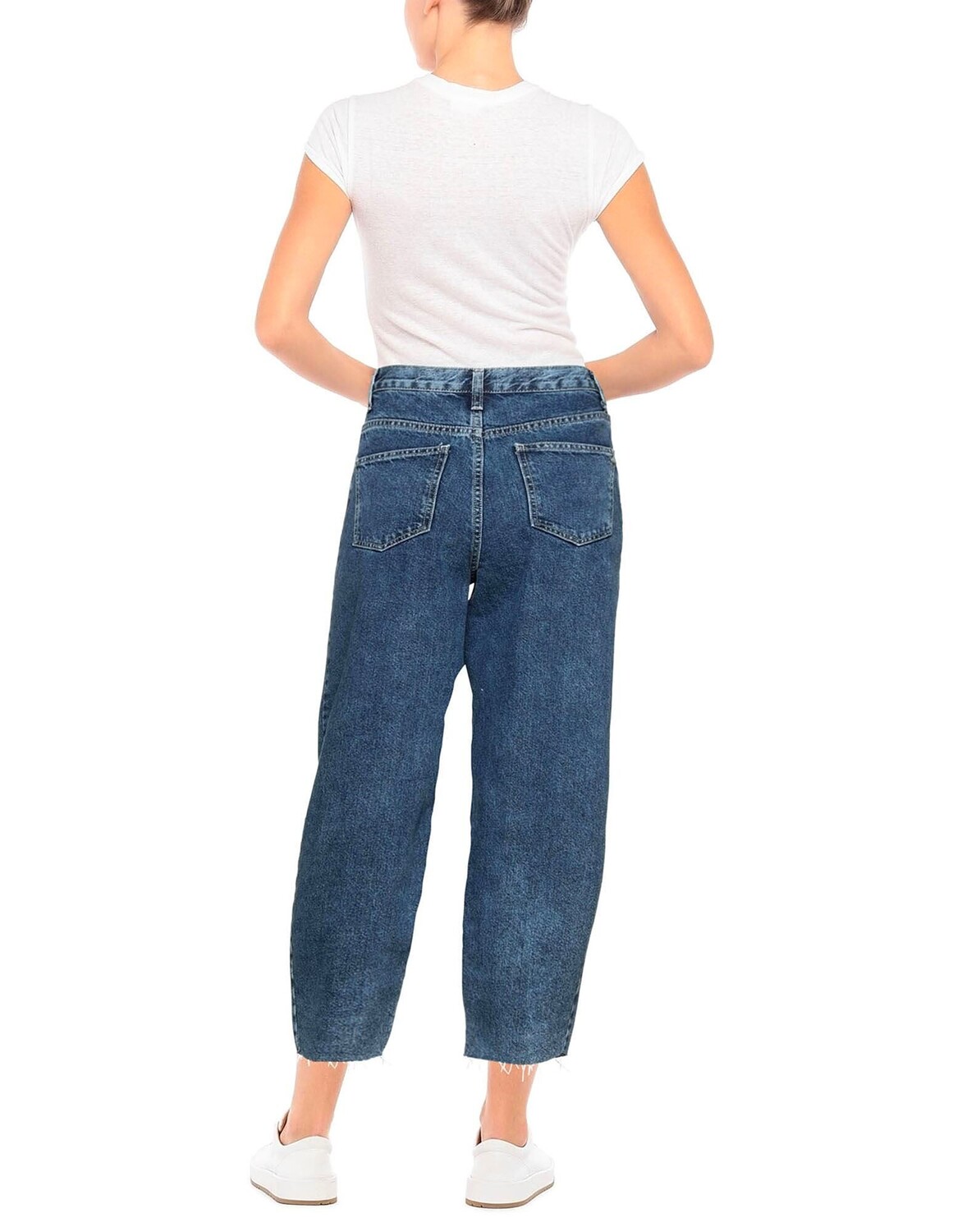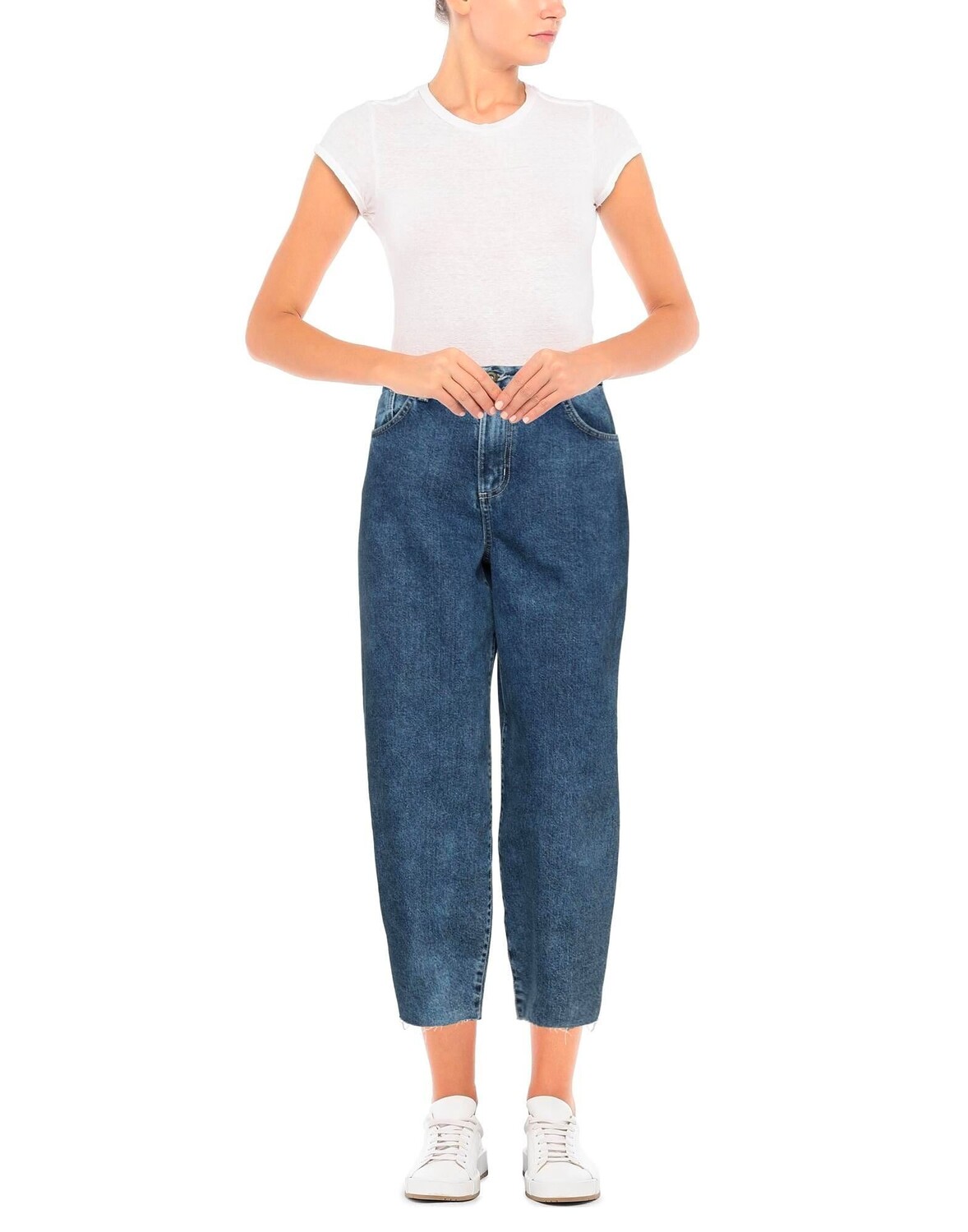 Джинсовая ткань, логотип бренда, одноцветное изделие, средняя стирка, завышенная талия, шлевки для ремня, зауженная брючина, стандартный крой, 1 пуговица, застежка-молния, пять карманов, маленький размер, модель мамического кроя