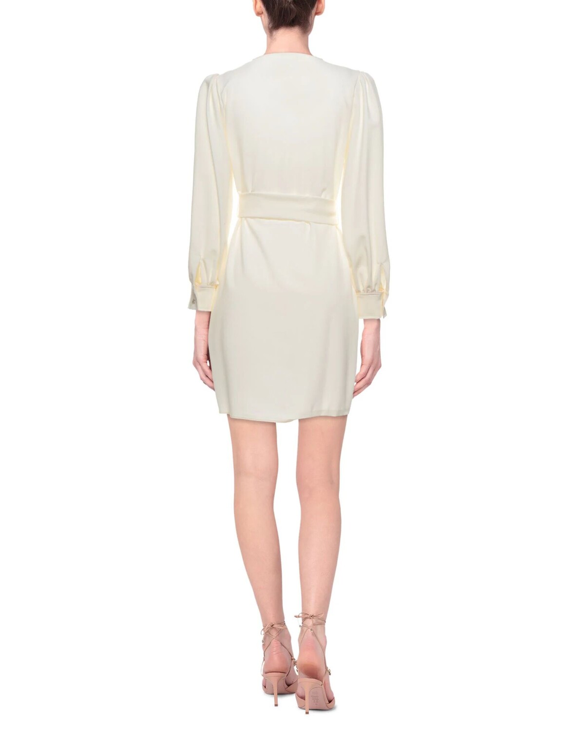 Креп, пояс, одноцветное изделие, глубокий вырез, длинные рукава, рукава-буфы, манжеты на пуговицах, без подкладки, застежка-молния, без карманов, стрейч, малый размер этой марки, расклешенное платье