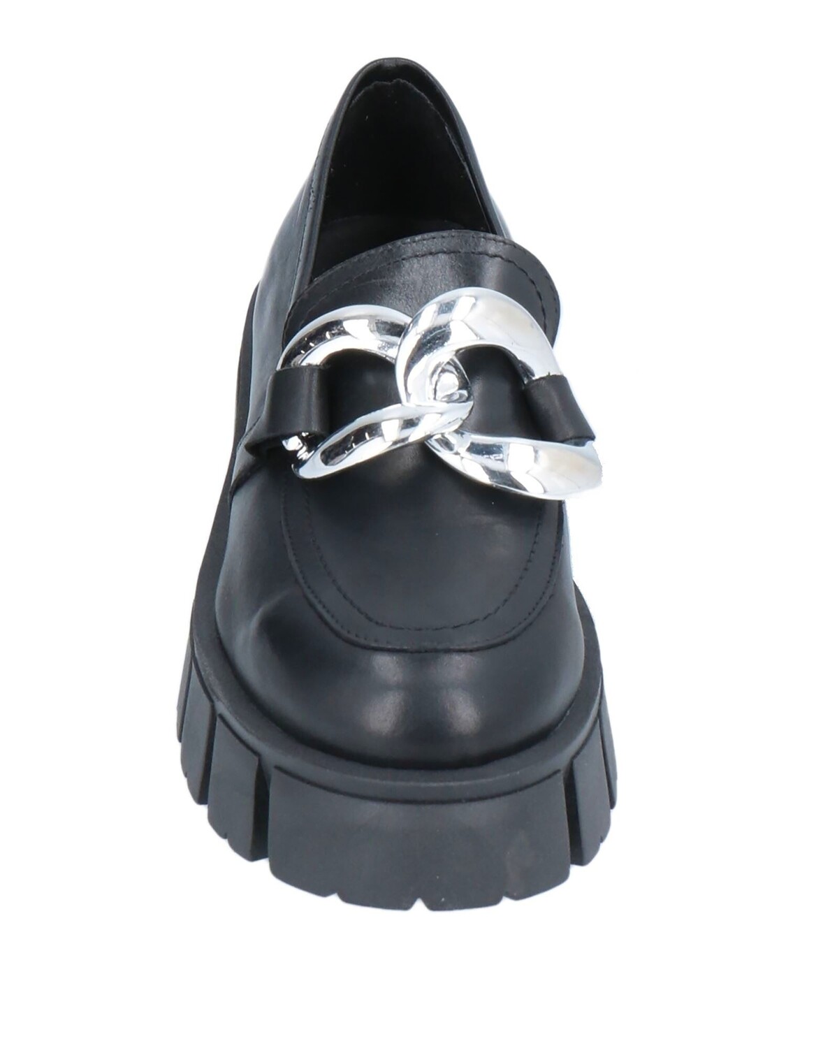 Кожа, металлические аппликации, одноцветное изделие с аппликациями, кожаная подкладка, скругленный носок, квадратный каблук, резиновая подошва с тиснением, содержит нетекстильные части животного происхождения, массивные лоферы
