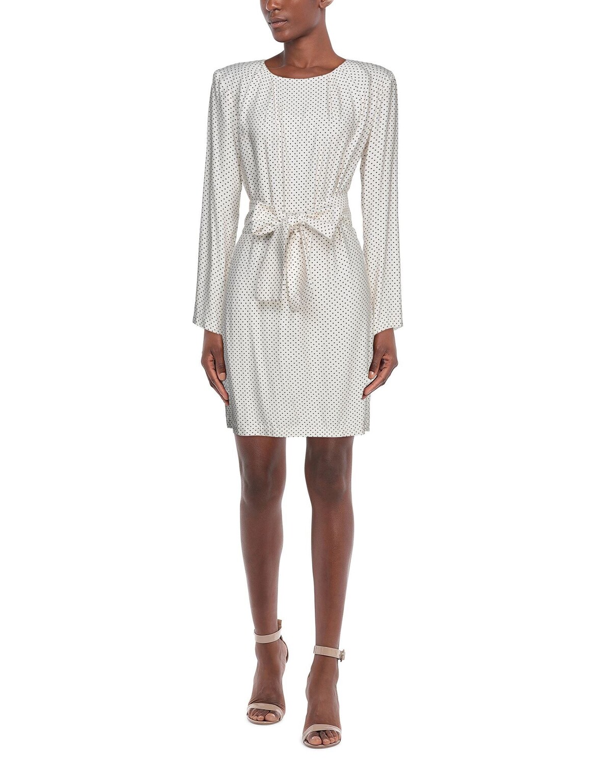 Полотняное переплетение, пояс, в горошек, круглый воротник, длинные рукава, без карманов, застежка сзади, застежка-молния, без подкладки, маленький размер