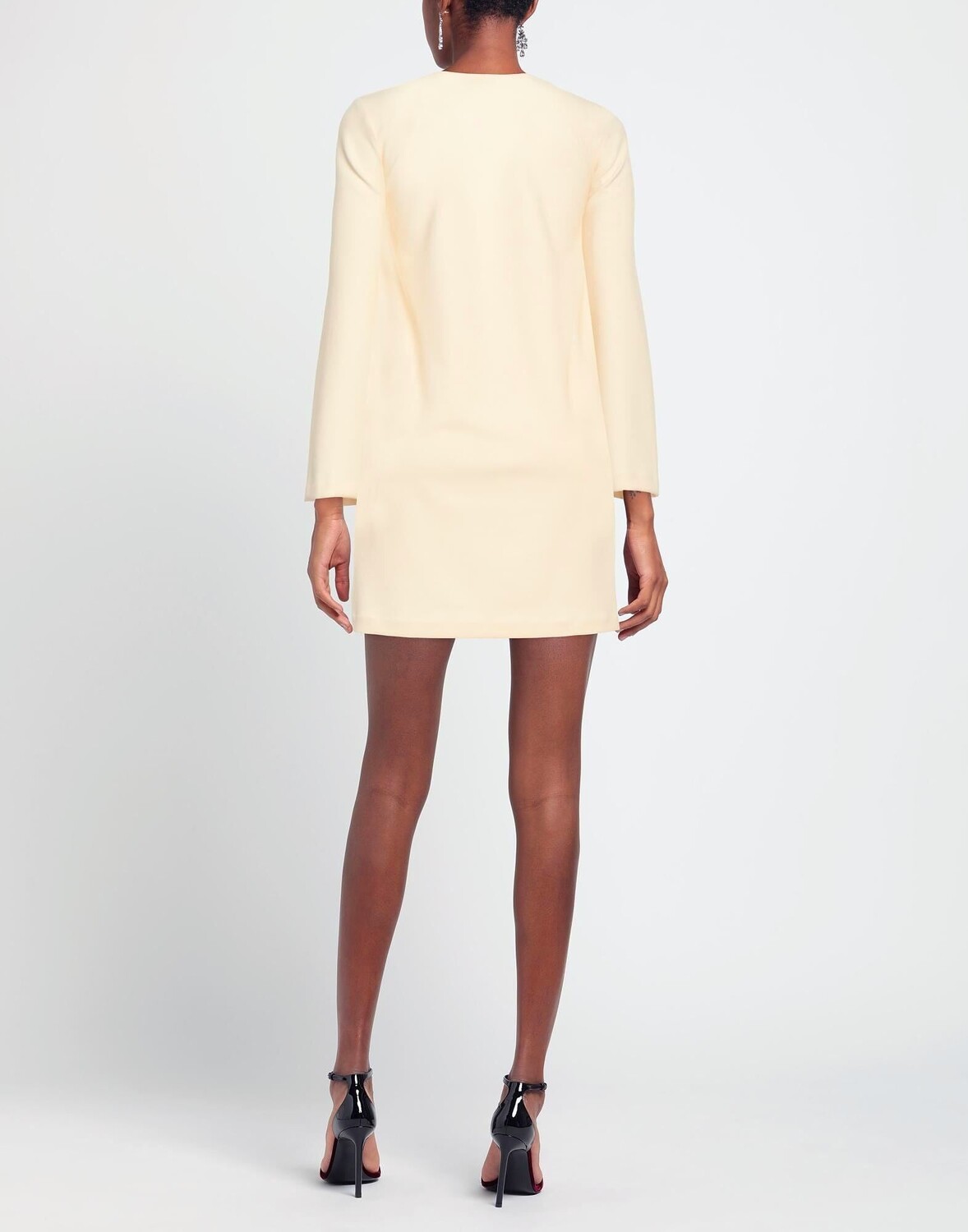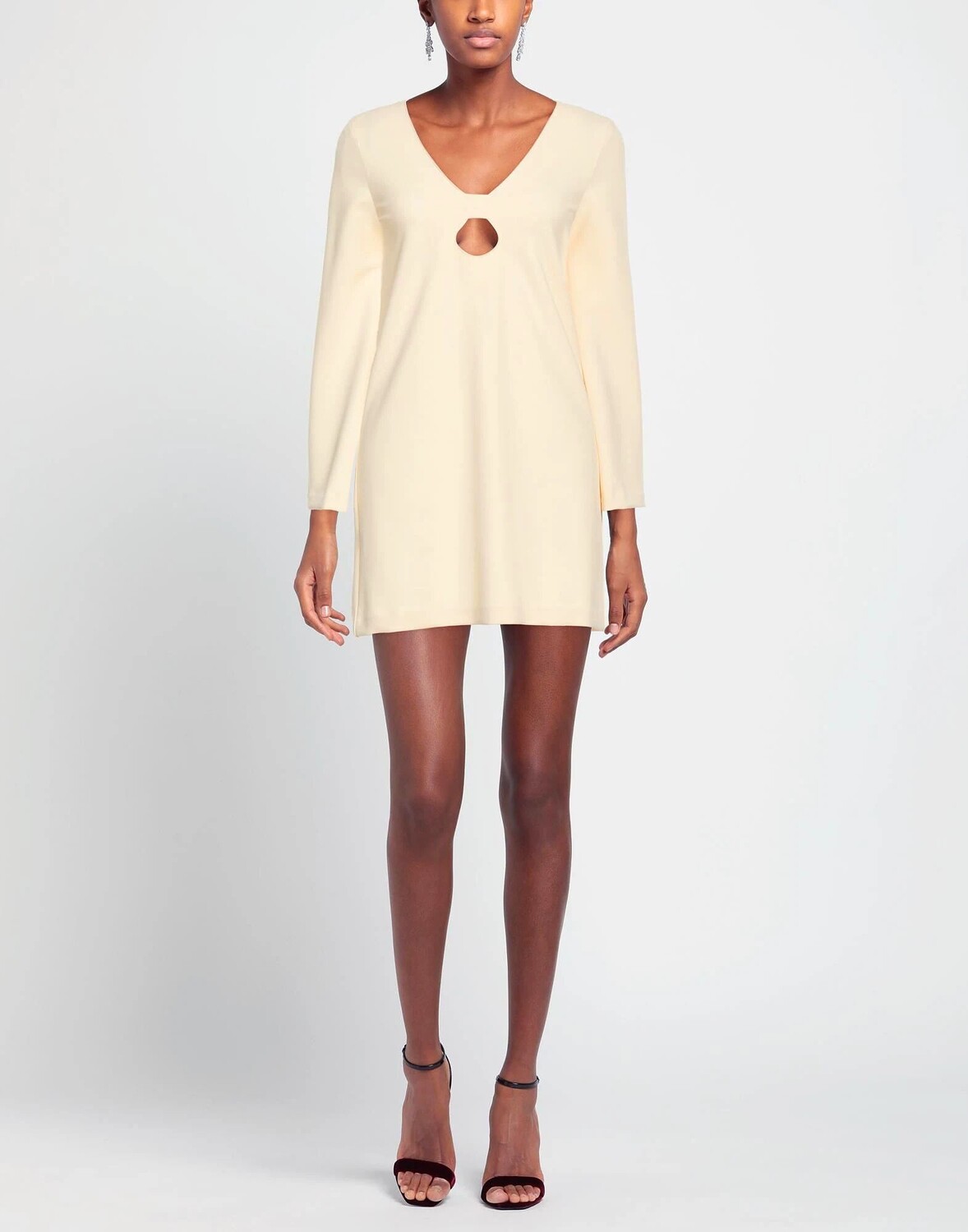 Креп, без аппликаций, одноцветное изделие, v-образный вырез, длинные рукава, без подкладки, без карманов, стрейч, фасон-карандаш, маленький размер