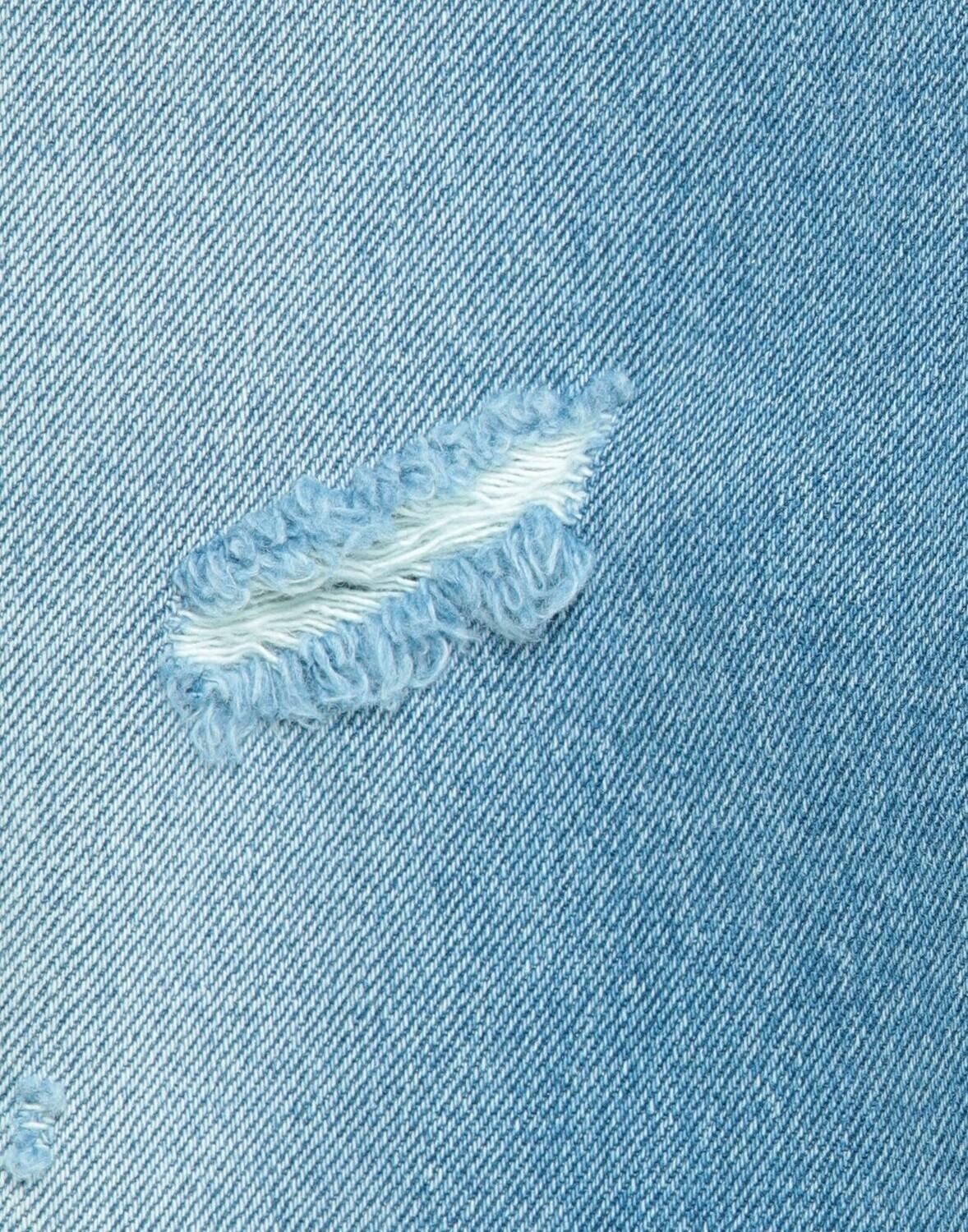 Джинсовая ткань, рваная ткань, выцветший, кожаные аппликации, логотип, одноцветное изделие, средняя степень стирки, завышенная талия, застежка спереди, пуговица, молния, множество карманов, содержит нетекстильные части животного происхождения