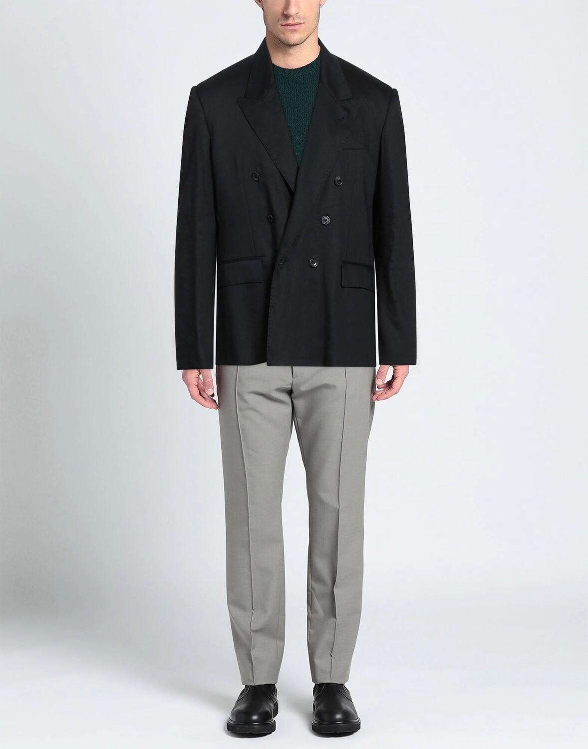 Полотняное переплетение, без аппликаций, одноцветное изделие, воротник с лацканами, двубортный, длинные рукава, на подкладке, пуговицы, множество карманов, стрейч, двубортный пиджак