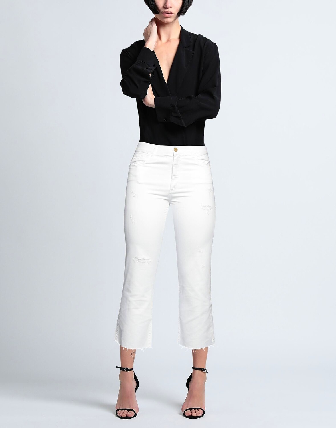 Деним, рваная ткань, без аппликаций, одноцветное изделие, цветная стирка, завышенная талия, шлевки для ремня, прямые брючины, стандартный крой, застежка-молния, 1 пуговица, пять карманов, модель прямого кроя, маленький размер