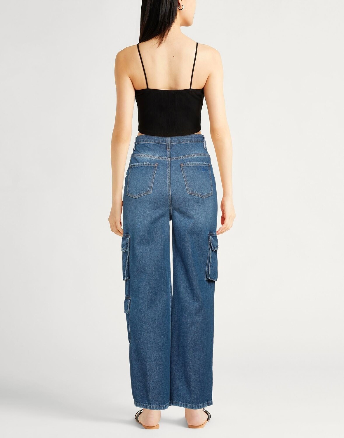 Джинсы карго, джинсовая ткань, потертые, выцветшие, одноцветное изделие, вышитый логотип, средняя стирка, завышенная талия, петли для ремня, свободный крой, 1 пуговица, застежка-молния, множество карманов, машинная стирка, нельзя отбеливать, нельзя сушить в стиральной машине, предназначено для широкий крой, эта марка маломерит