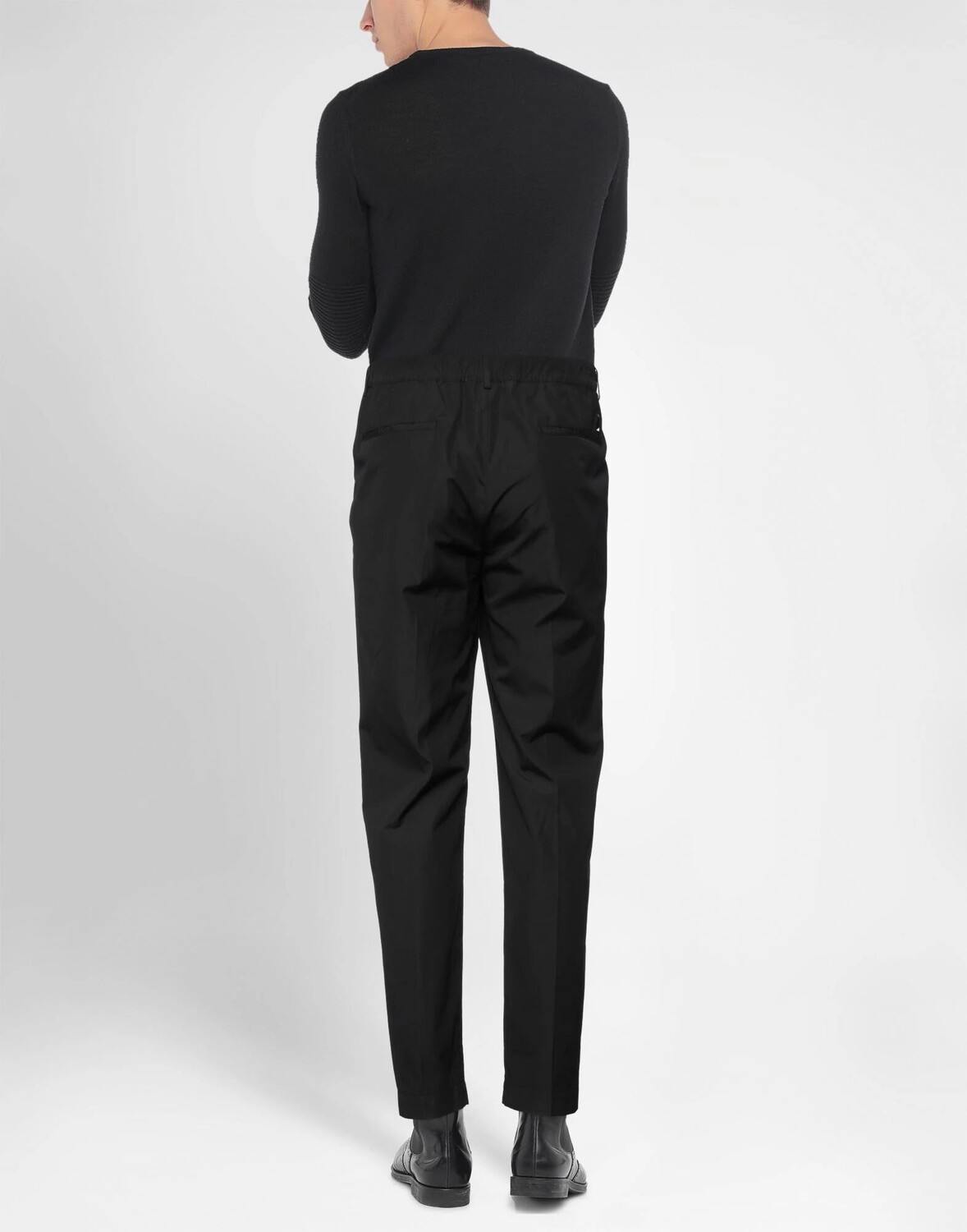 Полотняное переплетение, логотип бренда, одноцветное изделие, завышенная талия, зауженные брючины, стандартная посадка, пуговицы, застежка-молния, кулиска на талии, множество карманов, брюки чинос