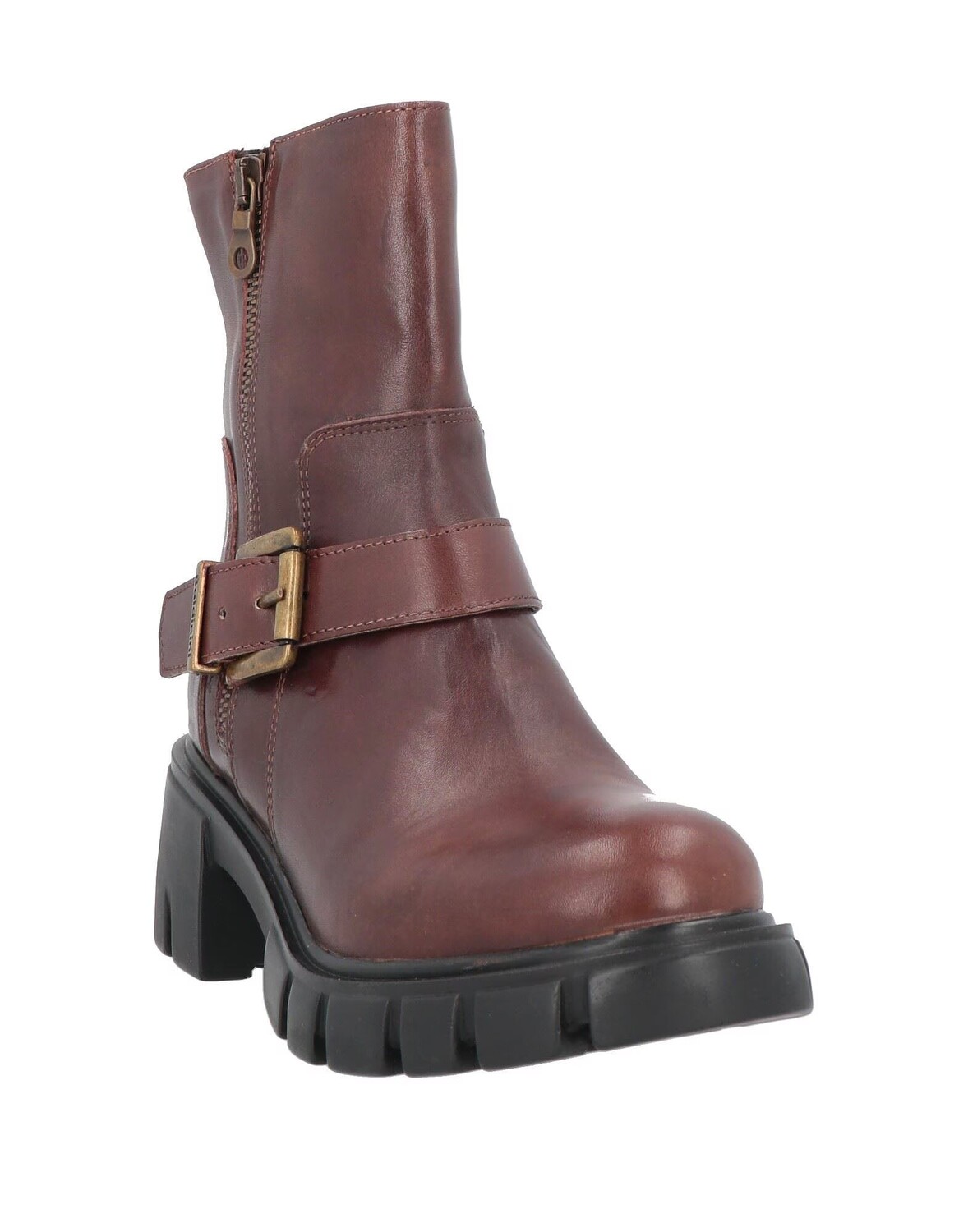 Кожа, логотип бренда, одноцветное изделие, кожаная подкладка, застежка-молния, скругленный носок, квадратный каблук, подошва с выступами, содержит нетекстильные части животного происхождения, массивные ботинки