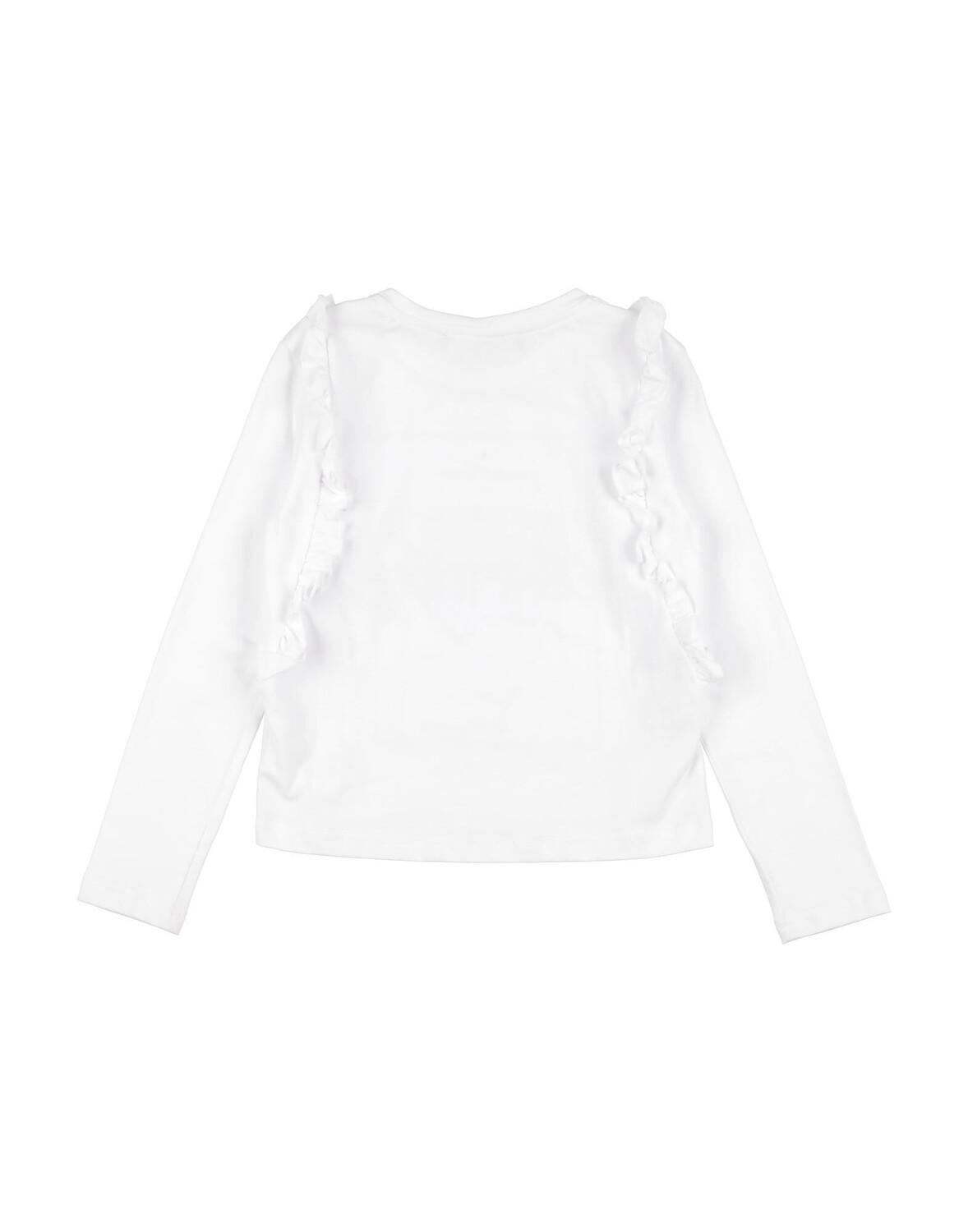 Джерси, блестки, оборки, логотип бренда, одноцветное изделие с принтом, круглый вырез, длинные рукава, без карманов, ручная стирка, нельзя отбеливать, нельзя сушить в стиральной машине