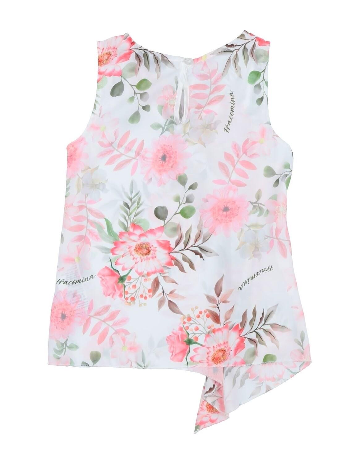 Креп, логотип бренда, цветочный принт, круглый вырез, без рукавов, 1 пуговица, без карманов, стирка при 30°С, не подвергать химчистке, не отбеливать, нельзя сушить в стиральной машине, гладить при температуре не выше 110°С