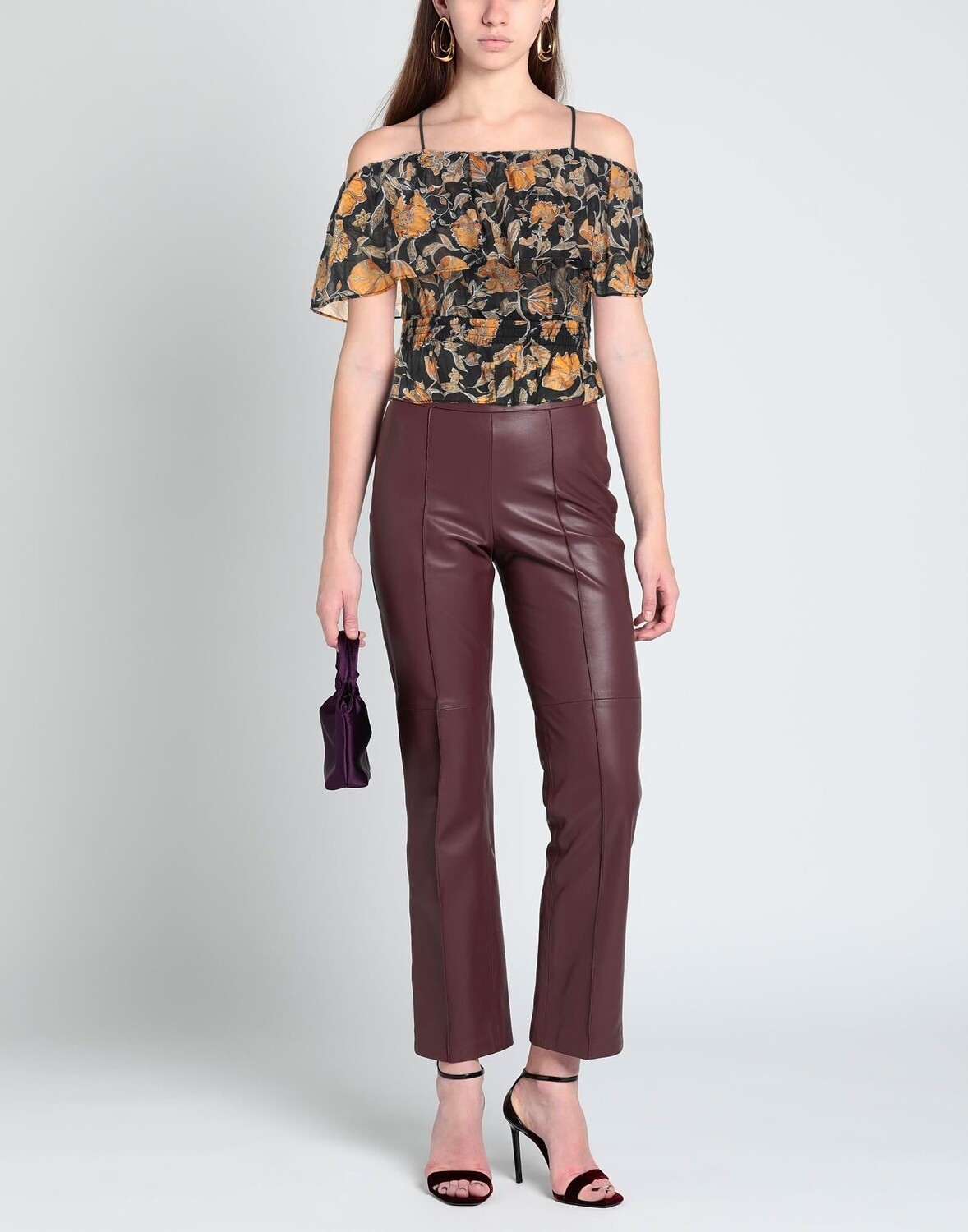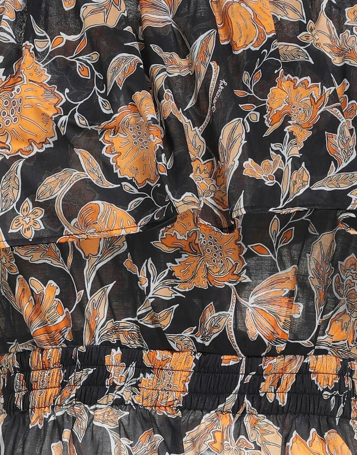 Тканый материал, присборки, логотип бренда, цветочный принт, короткие рукава, без карманов, топ с открытыми плечами