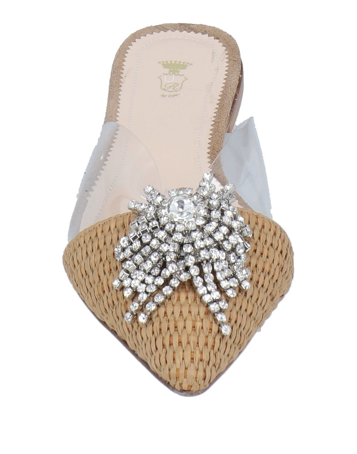 Рафия, пластик, кристаллы, двухцветный цвет, внутри кожа, узкий носок, без каблука, подошва кожа/резина, содержит нетекстильные части животного происхождения, модель без каблуков